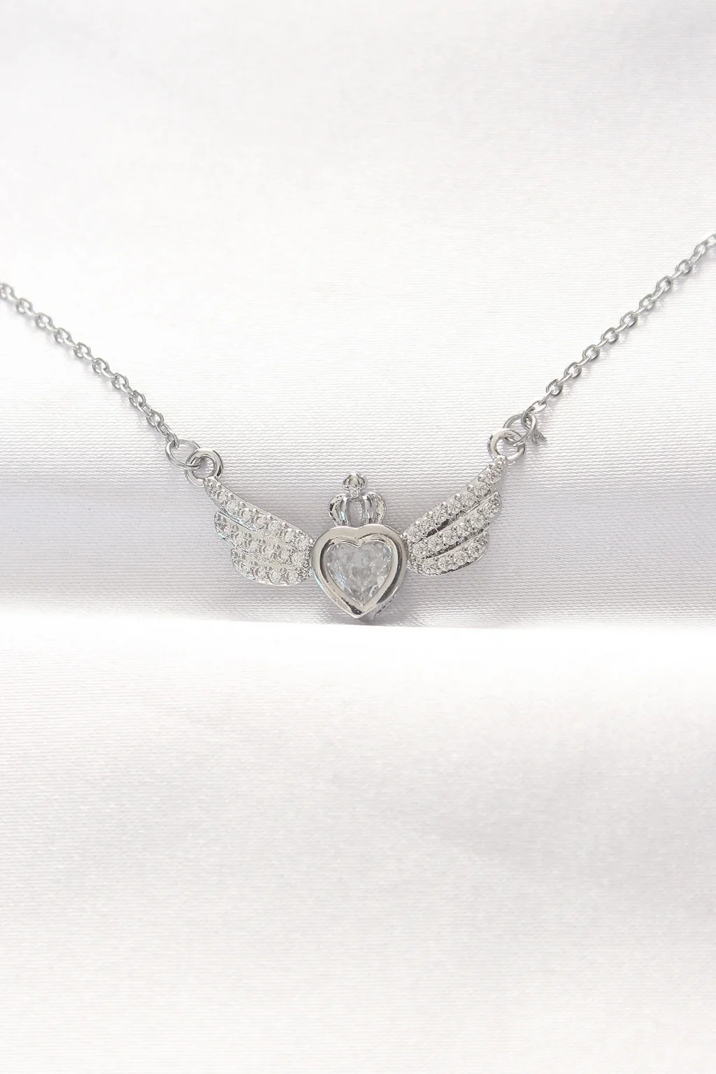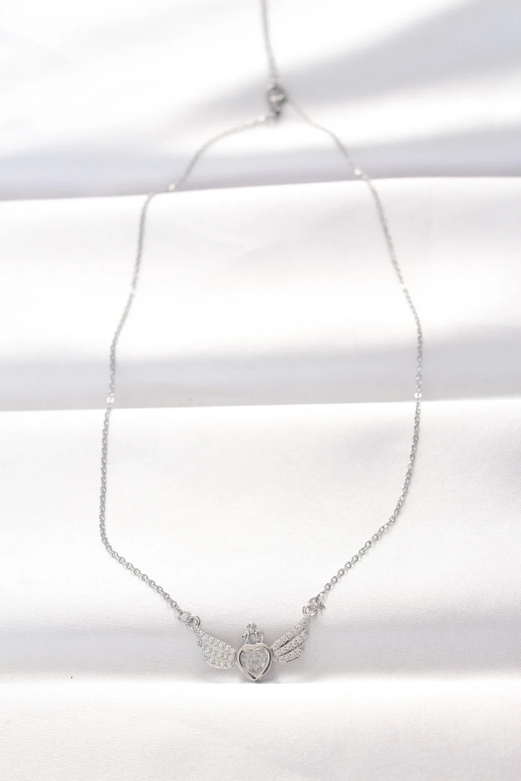 316L Çelik Silver Renk Zirkon Taşlı Kalpli Kanat Kolye