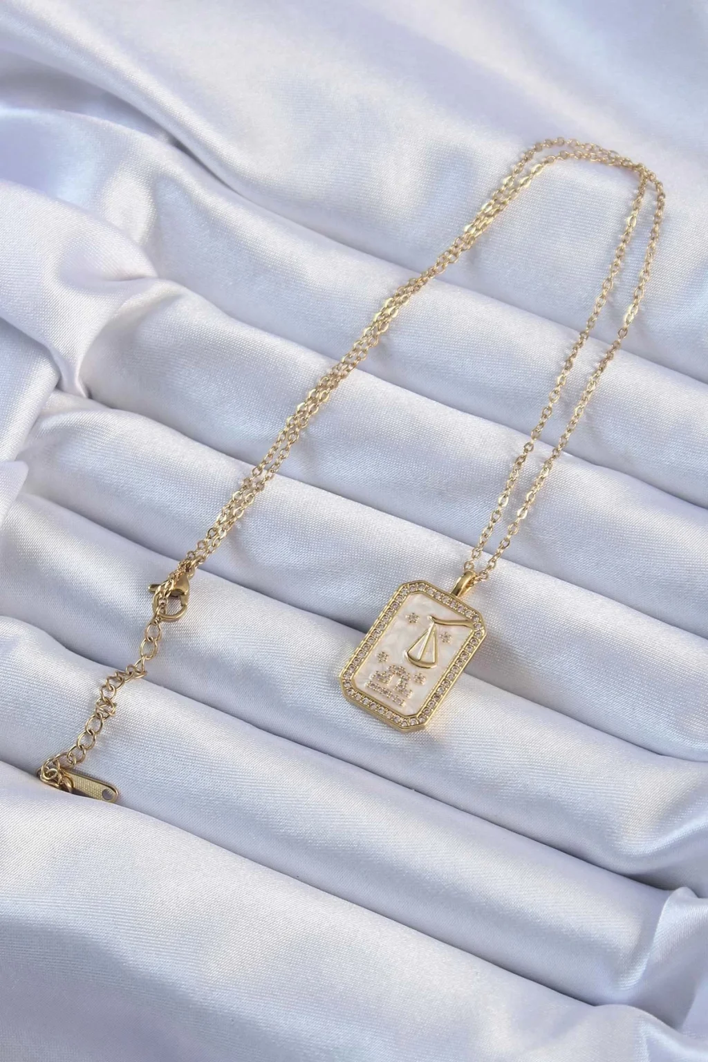 316L Çelik Zincir Altın Renk Zirkon Taşlı Çerçeveli Tarot Kolye