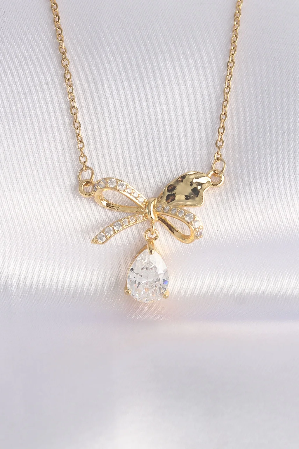 316L Çelik Zincir Altın Renk Zirkon Taşlı Damla Detay Fiyonk Kolye