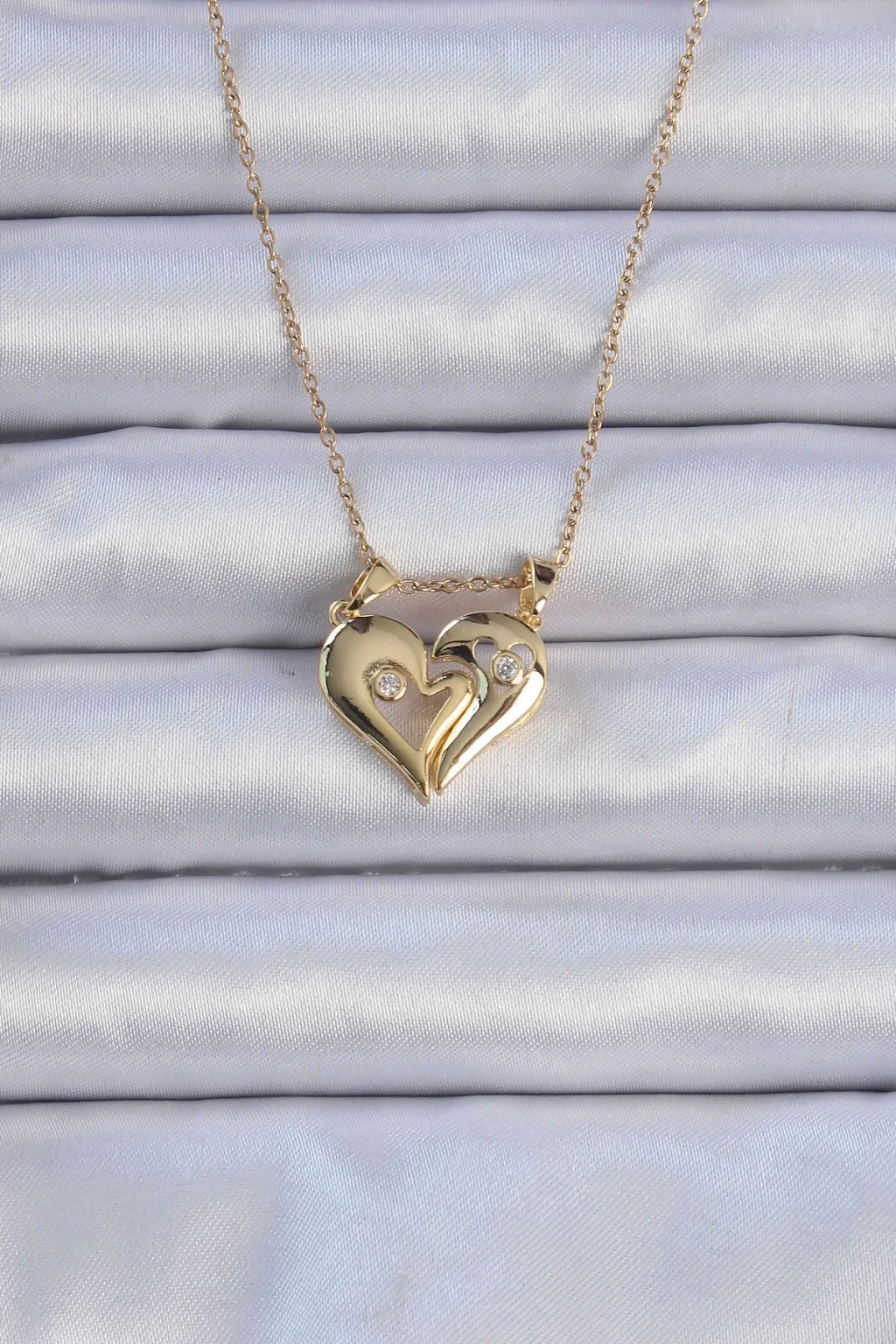 316L Çelik Zincir Altın Renk Zirkon Taşlı Mıknatıslı Kalp Kolye