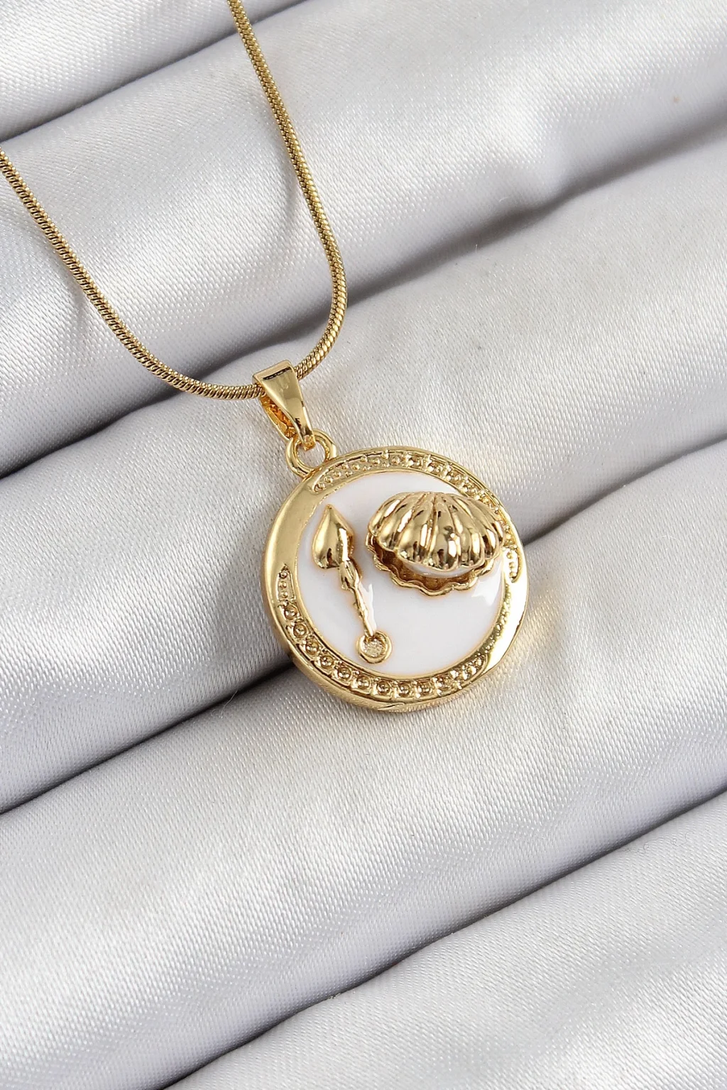 316L Çelik Zincir Beyaz Mineli Sanatsal Portre İstiridye Model Gold Renk Kadın Kolye