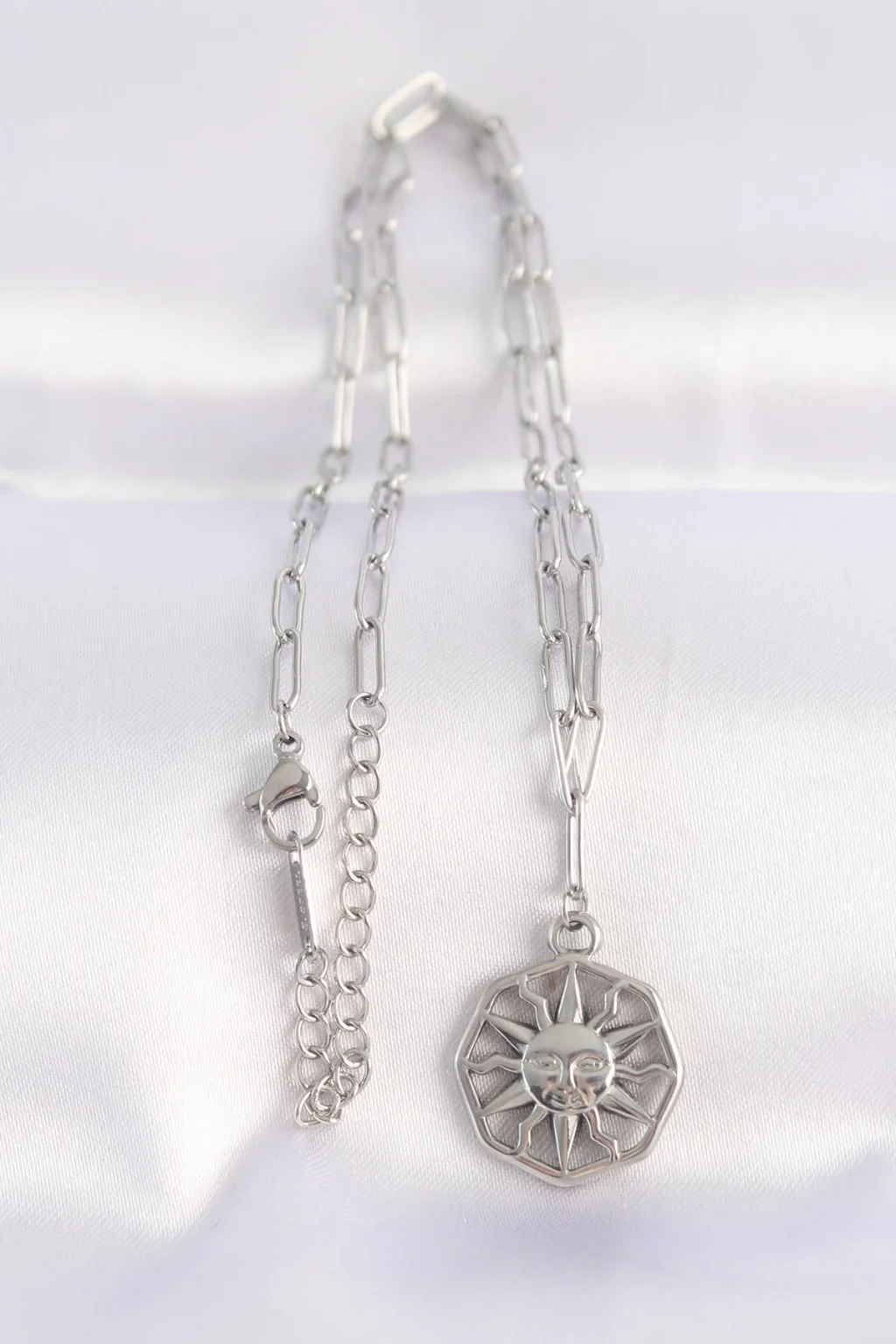 316L Çelik Zincir Gümüş Renk Güneş Kolye