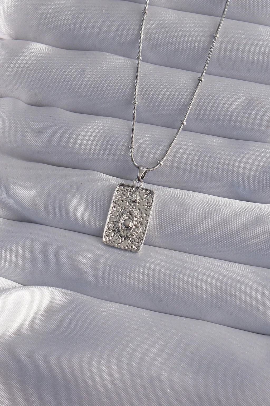 316L Çelik Zincir Gümüş Renk Lazer İşlemeli Göz Figür Tarot Kolye