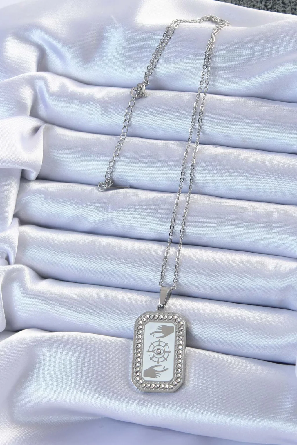 316L Çelik Zincir Gümüş Renk Mineli Zirkon Taşlı Göz Figür Tarot Kolye