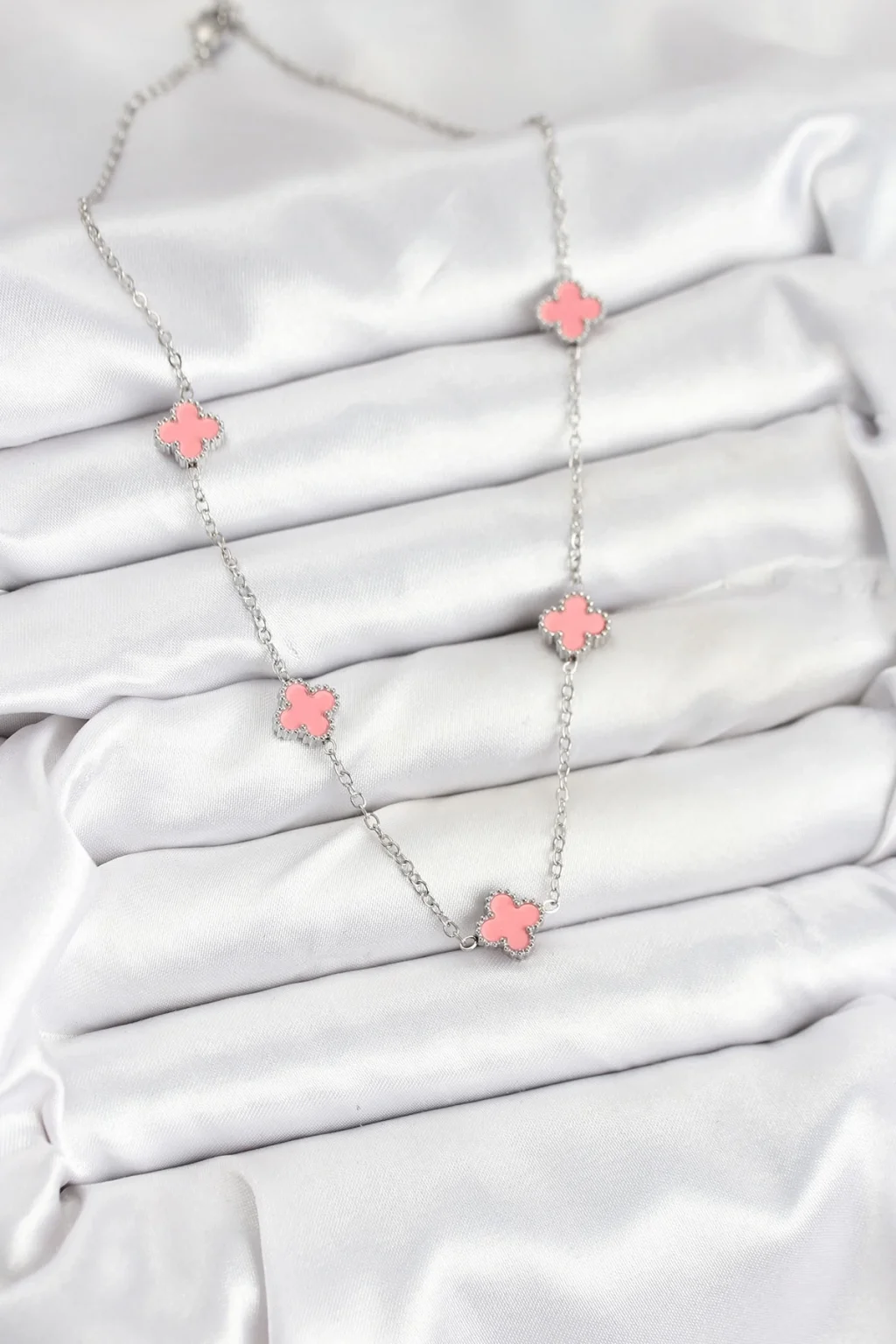 316L Çelik Zincir Gümüş Renk Pembe Baby Boy Yonca Kadın Kolye