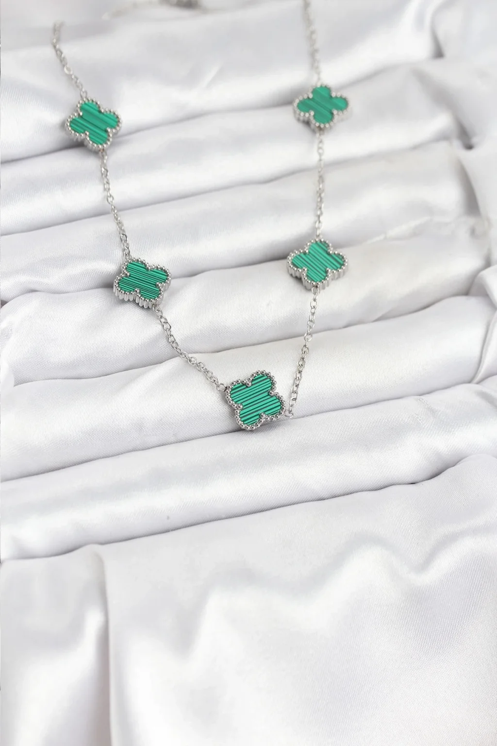 316L Çelik Zincir Gümüş Renk Yeşil Yonca Kadın Kolye