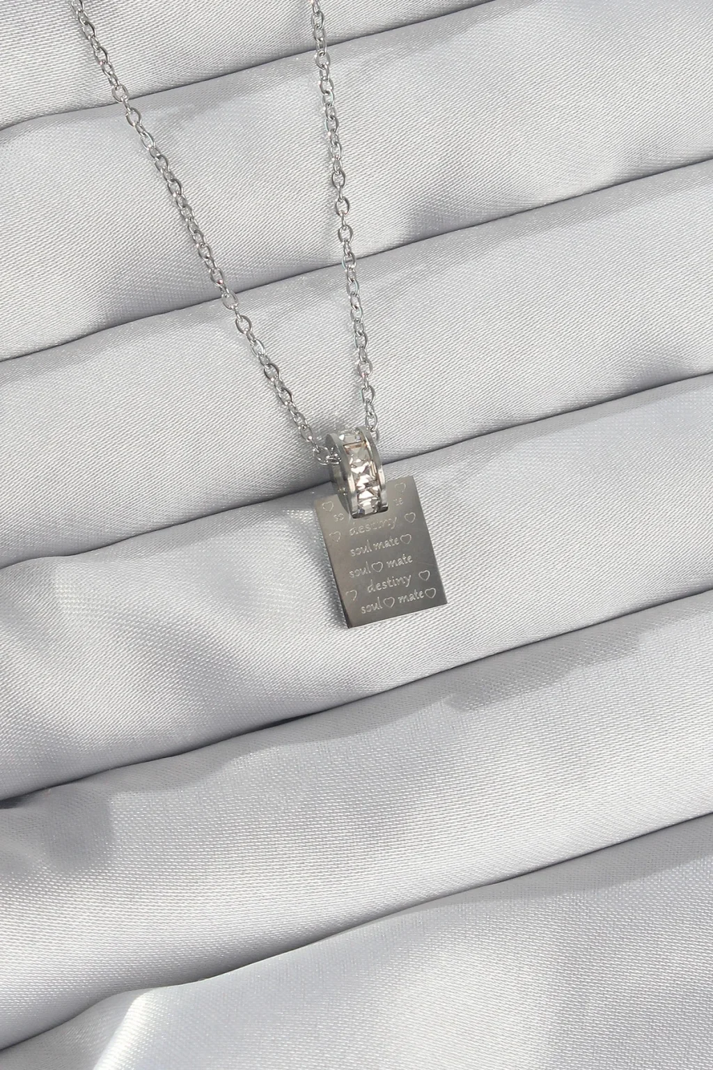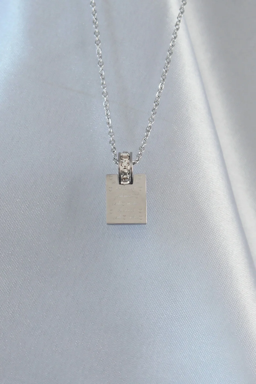 316L Çelik Zincir Gümüş Renk Zirkon Taşlı Aşk Mektubu Kolye