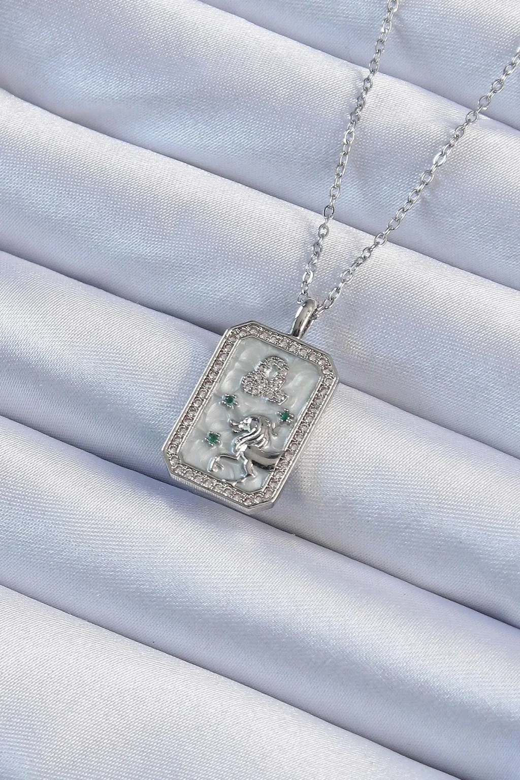 316L Çelik Zincir Gümüş Renk Zirkon Taşlı Aslan Figürlü Tarot Kolye