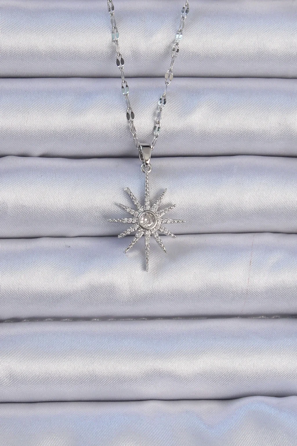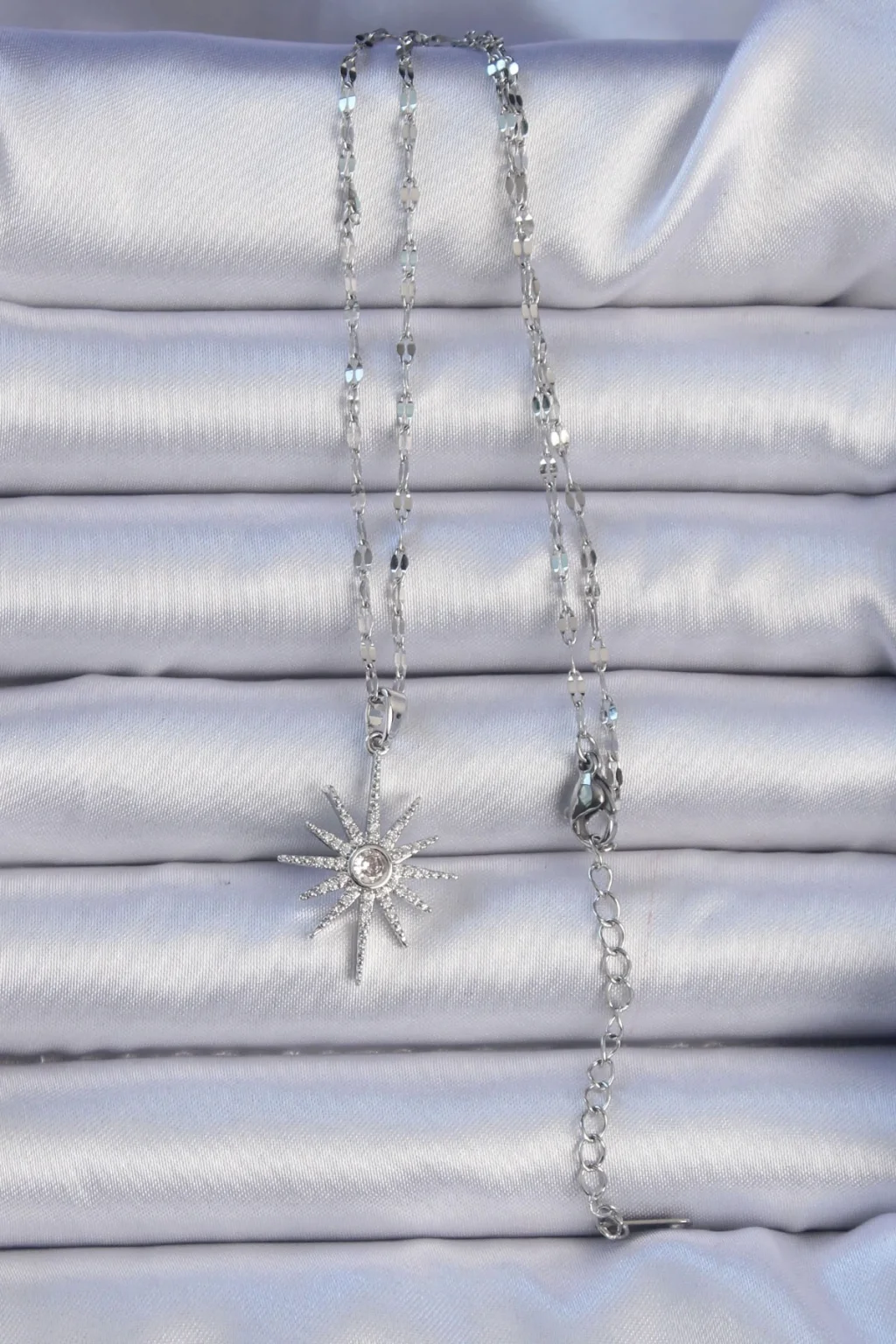 316L Çelik Zincir Gümüş Renk Zirkon Taşlı Kutup Yıldızı Kolye