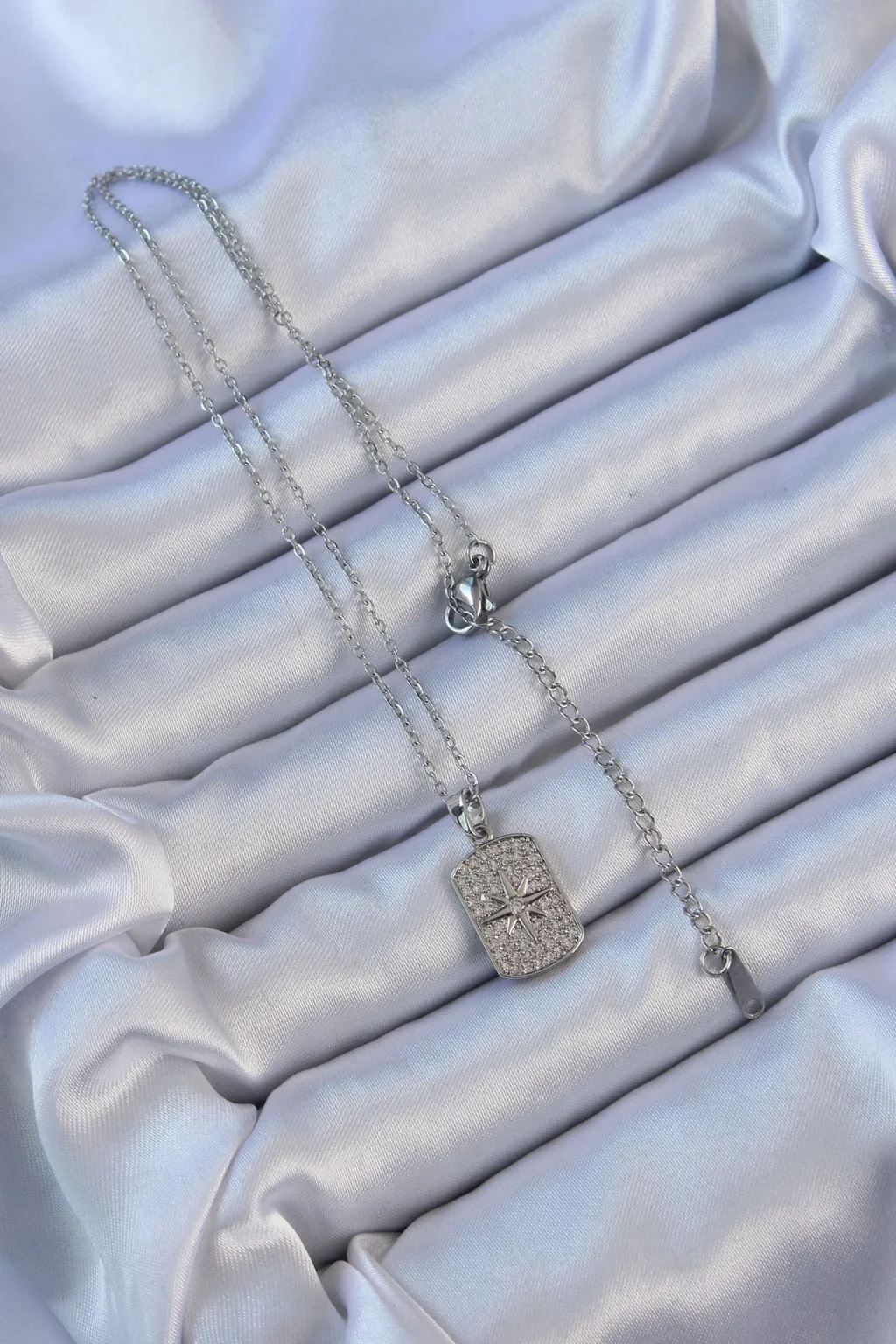 316L Çelik Zincir Gümüş Renk Zirkon Taşlı Kutup Yıldızlı Vintage Kolye