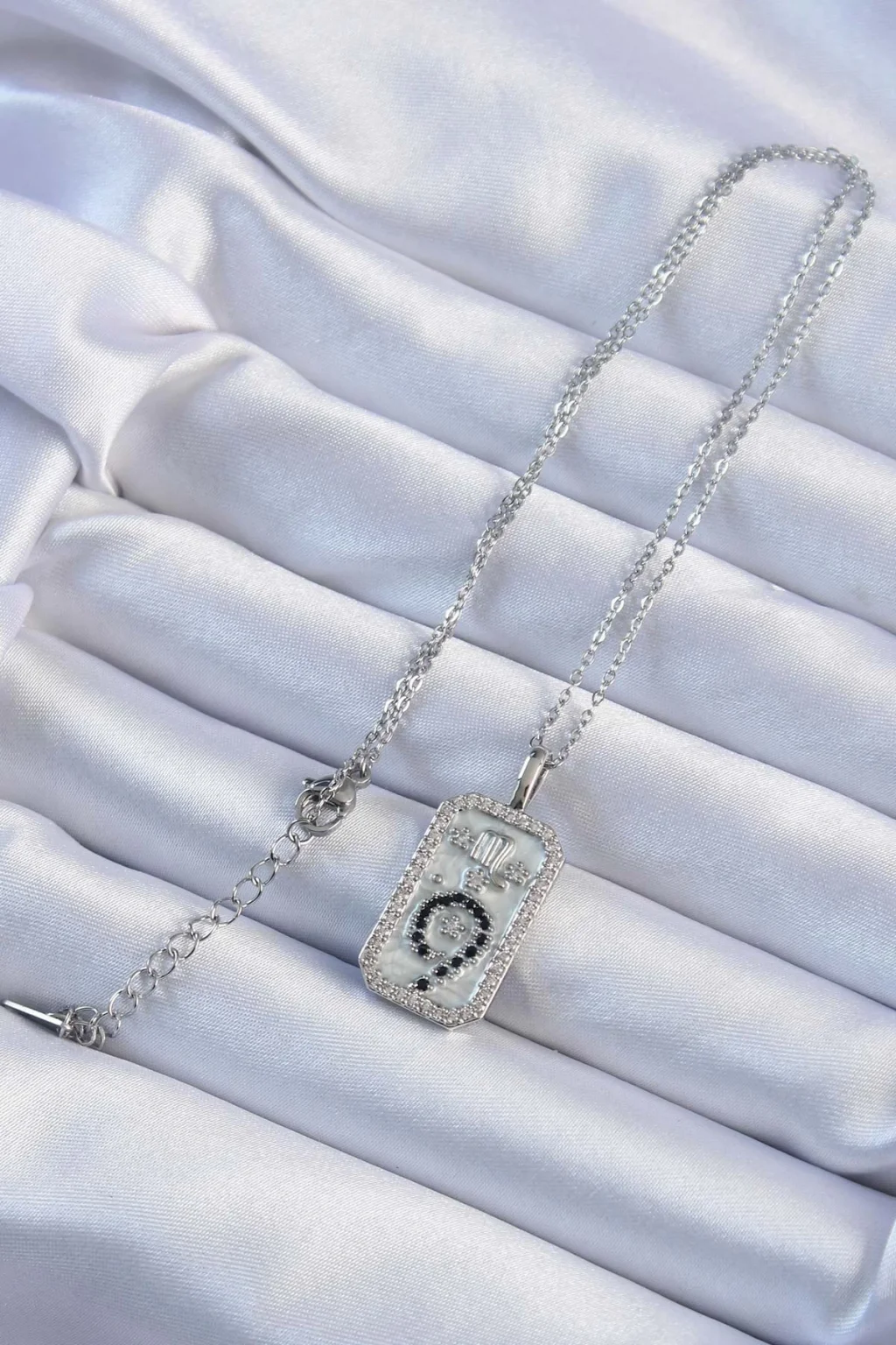 316L Çelik Zincir Gümüş Renk Zirkon Taşlı Minimal Papatya Figürlü Tarot Kolye