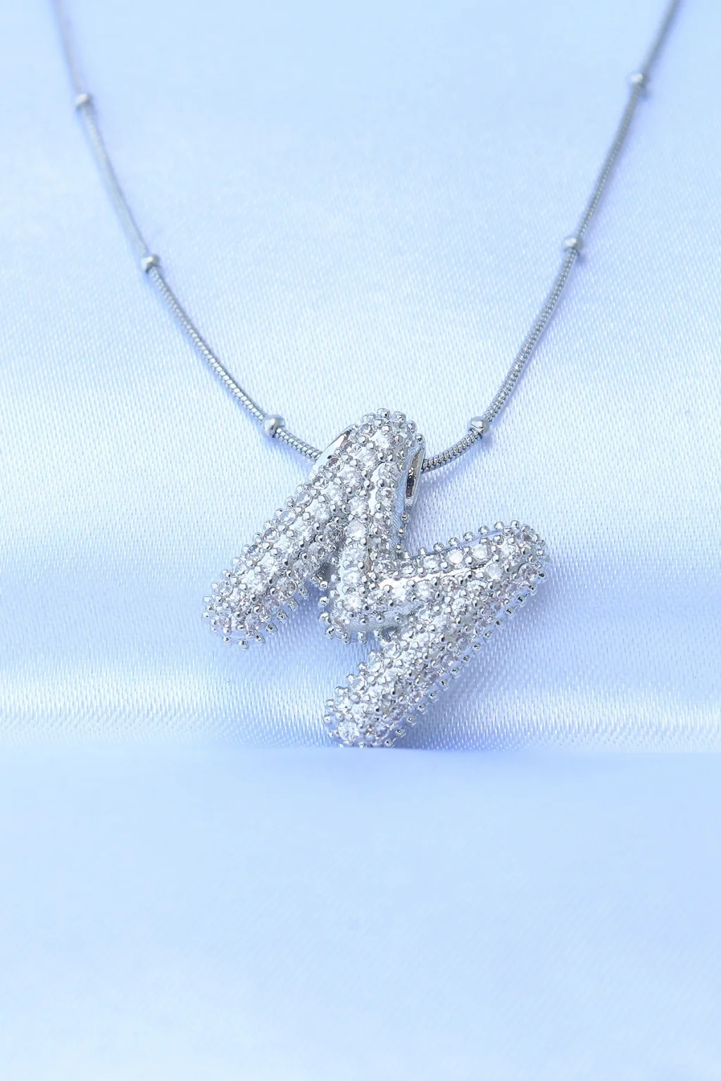 316L Çelik Zincirli Zirkon Taşlı M Harfli Gümüş Renk Bubble Kolye