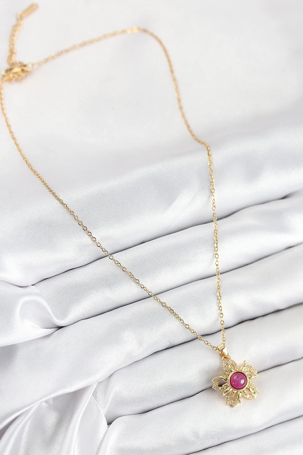 316L Çelik Zirkon Taşlı Döner Güneş Model Gold Renk Kadın Kolye