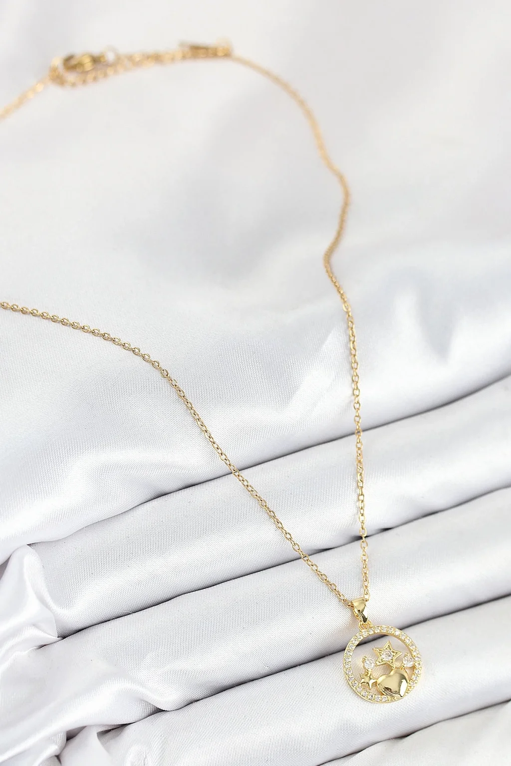 316L Çelik Zirkon Taşlı Yıldız Ve Kalp Model Gold Renk Kadın Kolye