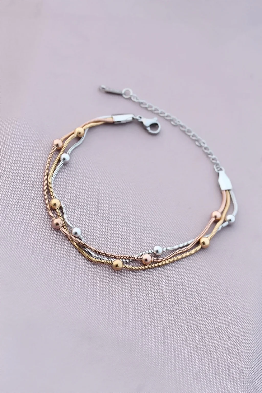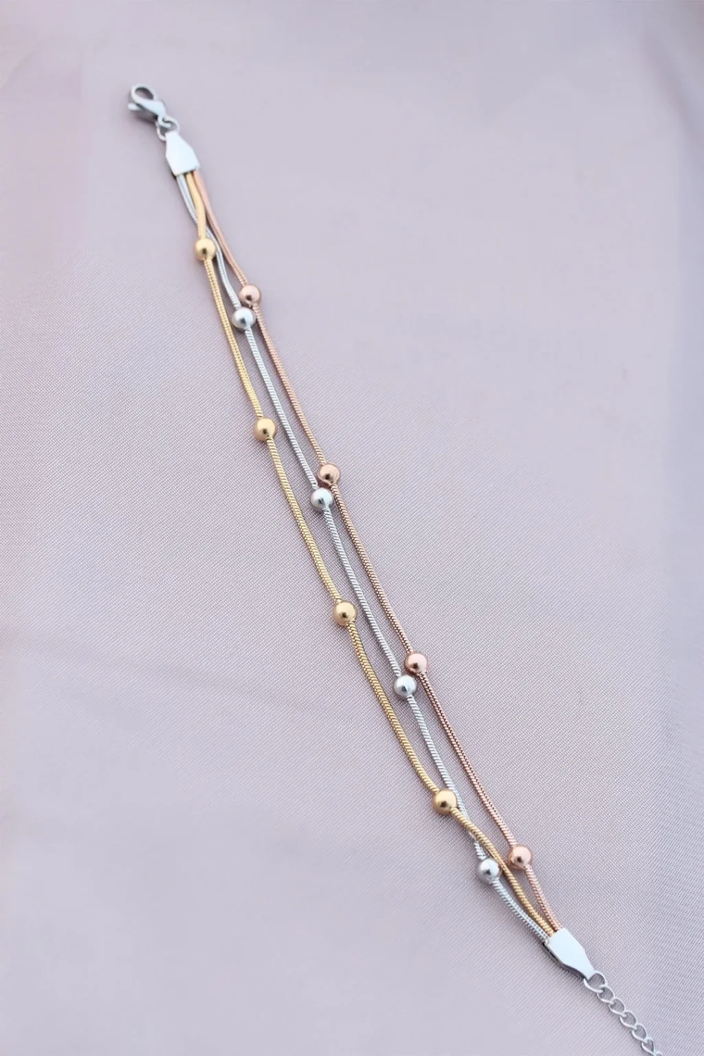 316L Kararmaz Çelik Gümüş Renk Top Zincirli Kadın Bileklik