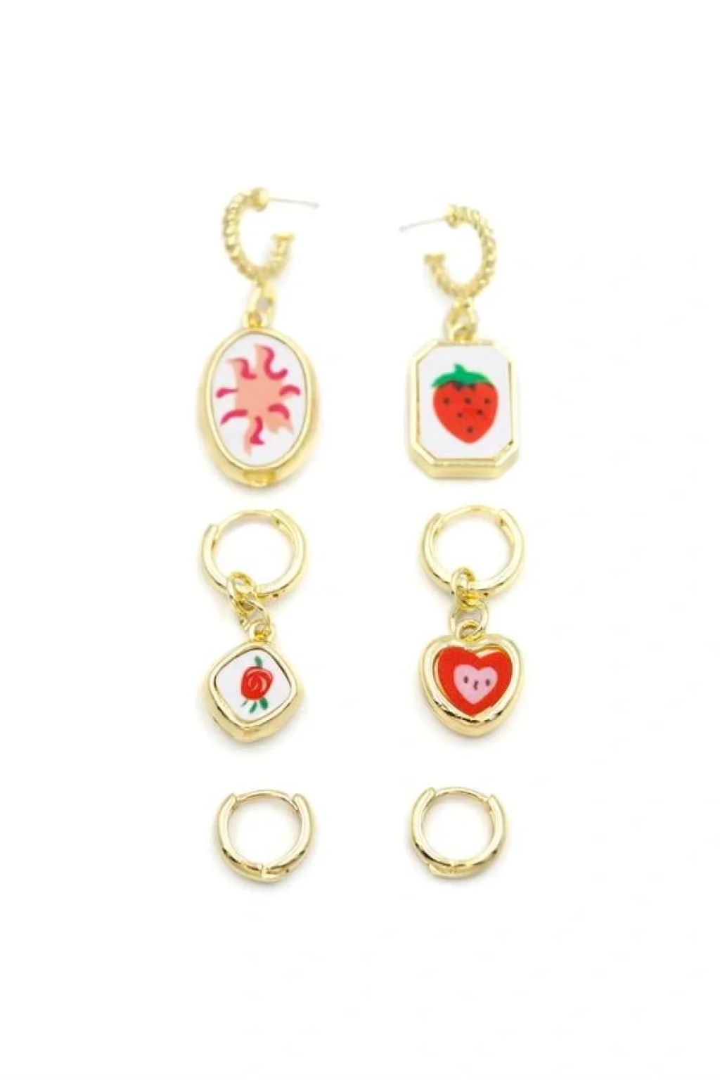 • 3'lü Çilek Set Küpe - Altın