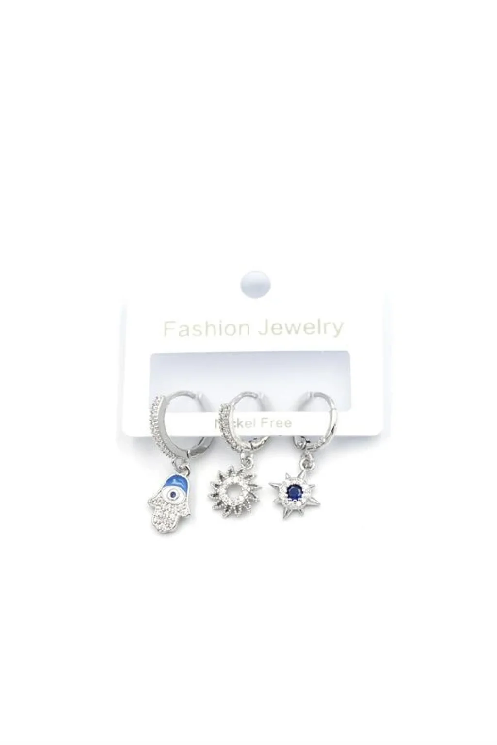 • 3'lü Fatıma Eli Küpe - Gümüş