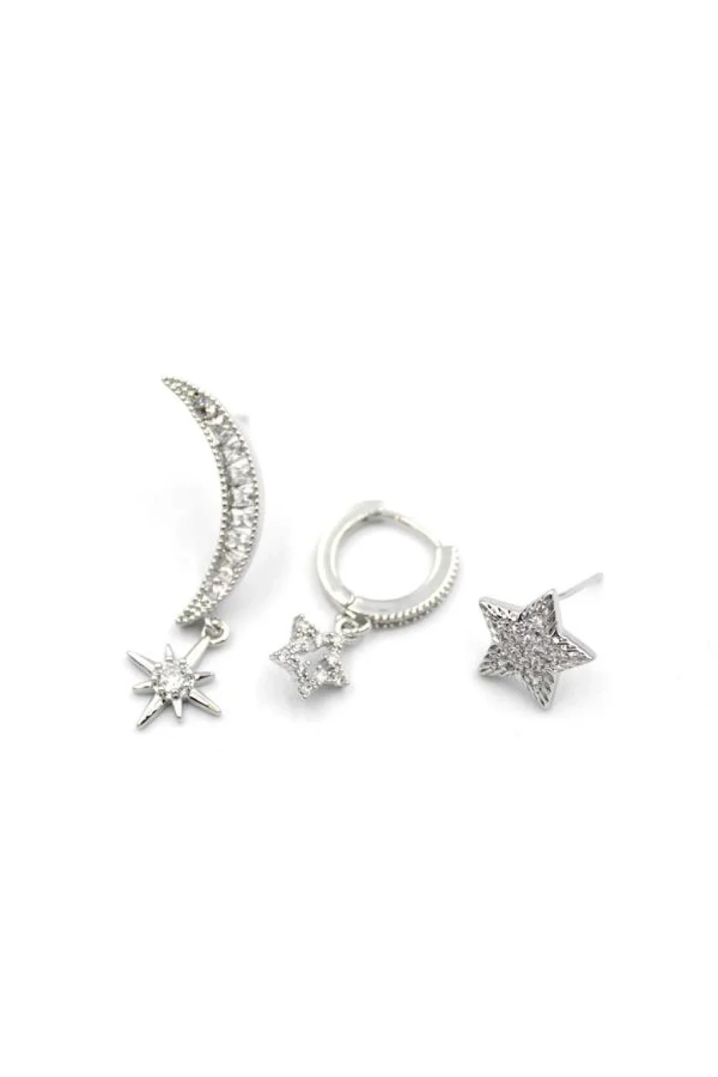 • 3'lü Hilal Yıldız Küpe - Gümüş