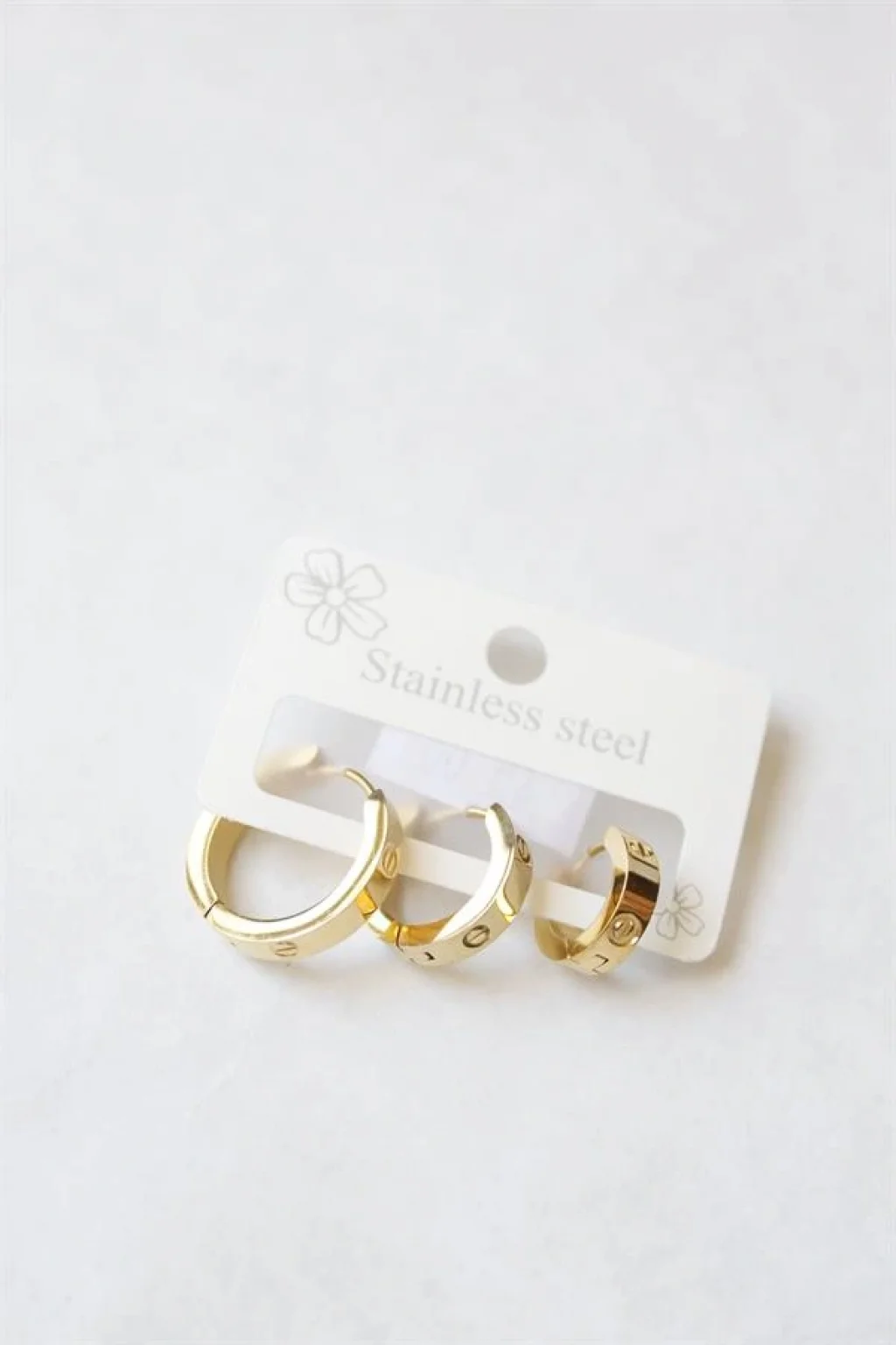 • 3'lü Taşsız Çelik Halka Küpe - Altın