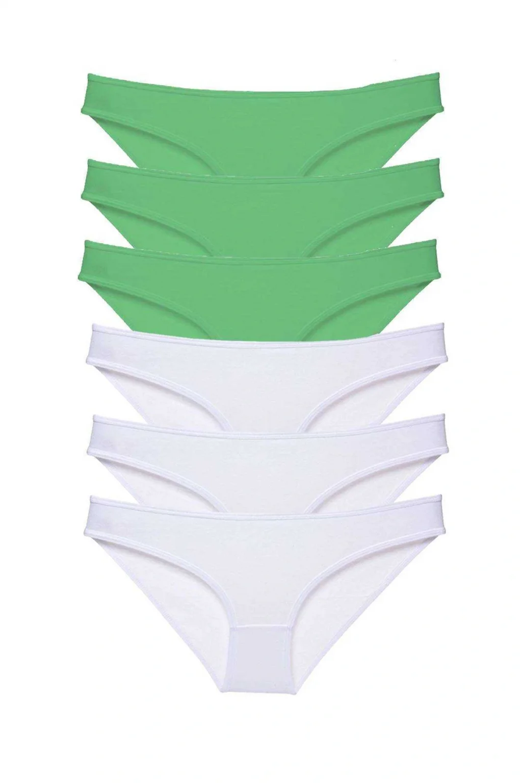 • 6 adet Eko Set Likralı Kadın Slip Külot Yeşil Beyaz