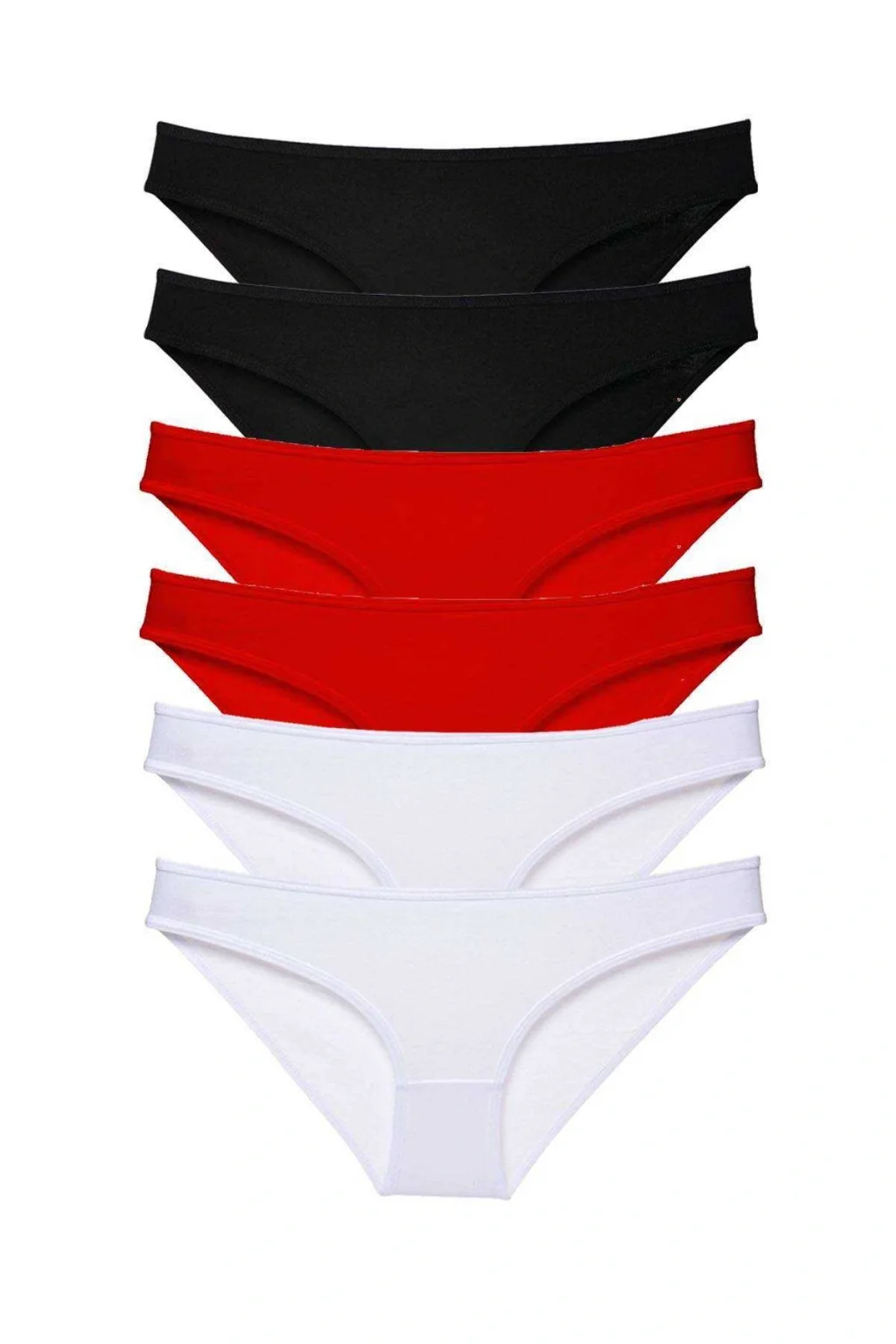 6 adet Süper Eko Set Likralı Kadın Slip Külot Siyah Kırmızı Beyaz