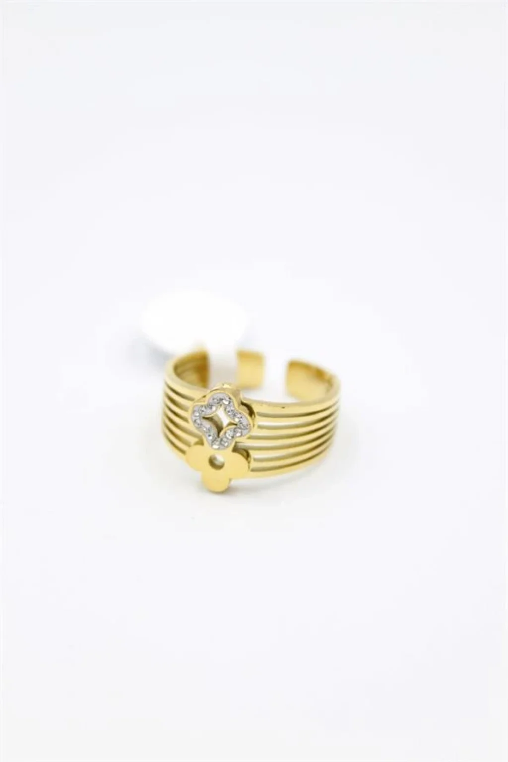 • 6'lı Taşlı Yonca Yüzük - Altın