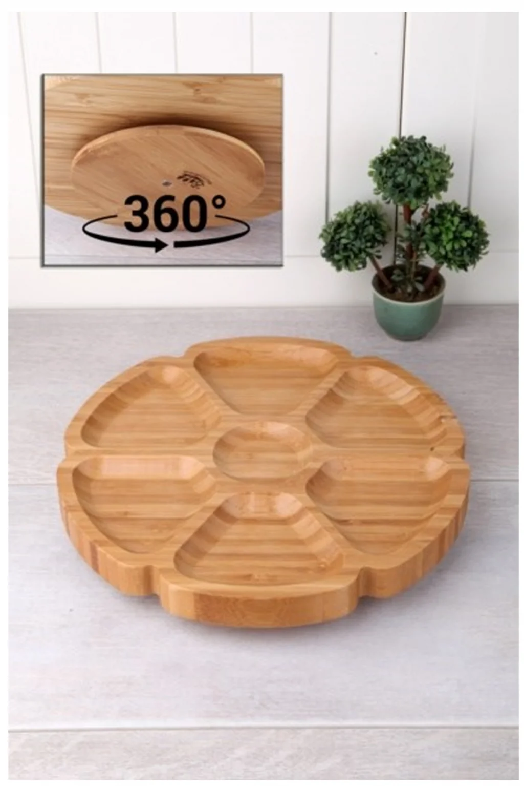 Paket İçeriği : 1 adet  7 Bölmeli 25 Cm Dönerli Bambu Sunum Royaleks-BLS DS7-2525
