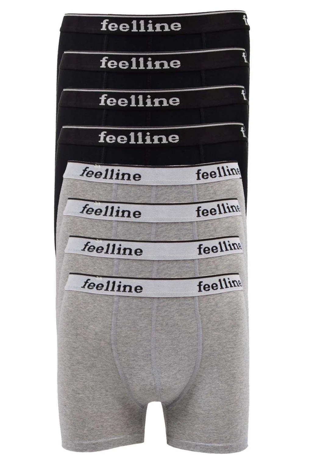 • 8 adet Feelline Siyah ve Gri Pamuklu Doğal Likralı Erkek Boxer