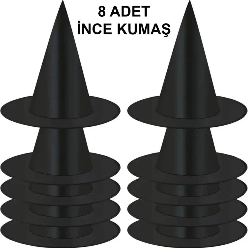 8 Adet Siyah Cadı Şapkası – Yetişkin Çocuk Kostüm Aksesuarı