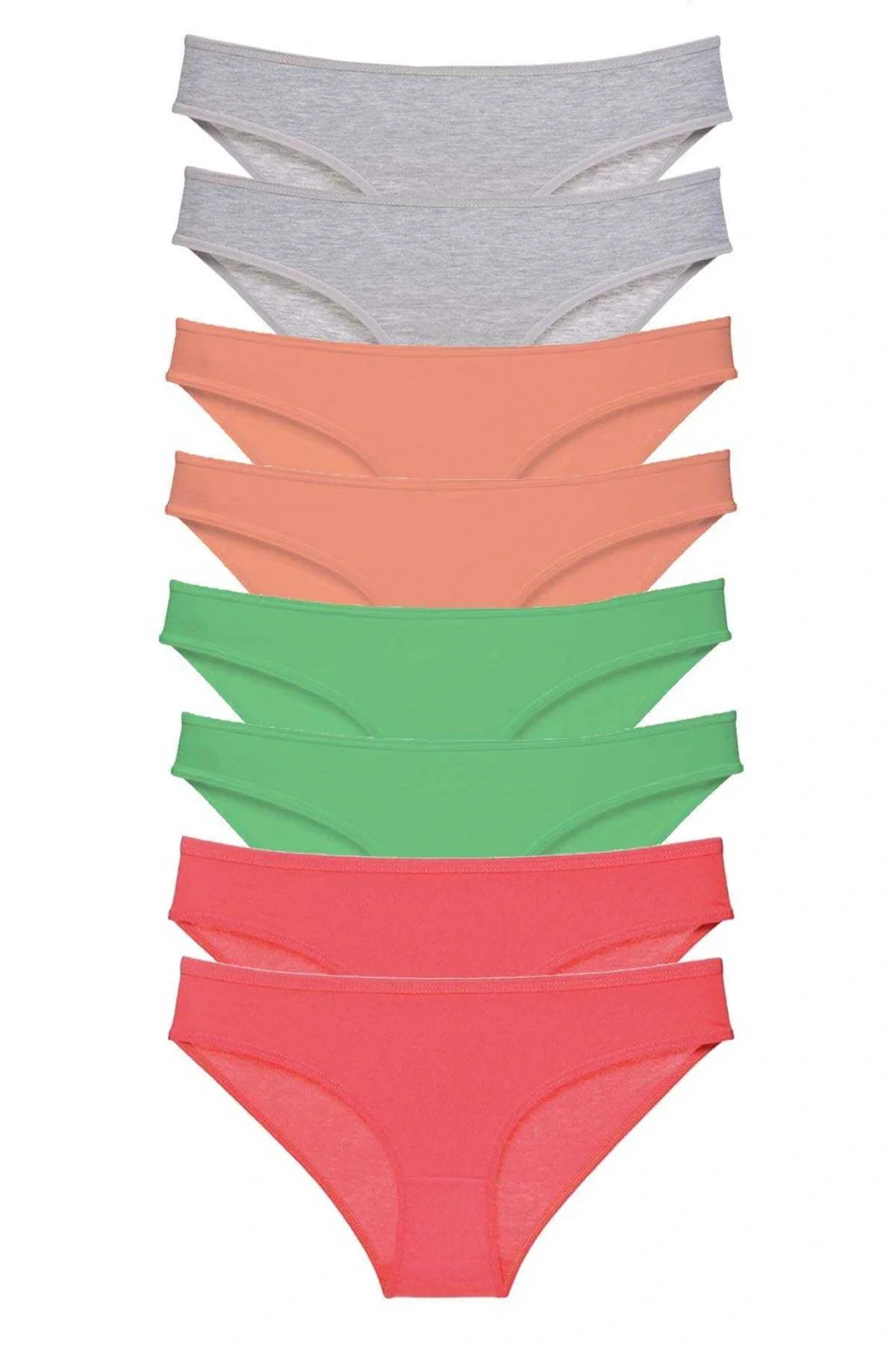 8 adet Süper Eko Set Likralı Kadın Slip Külot Gri Pudra Yeşil Fuşya