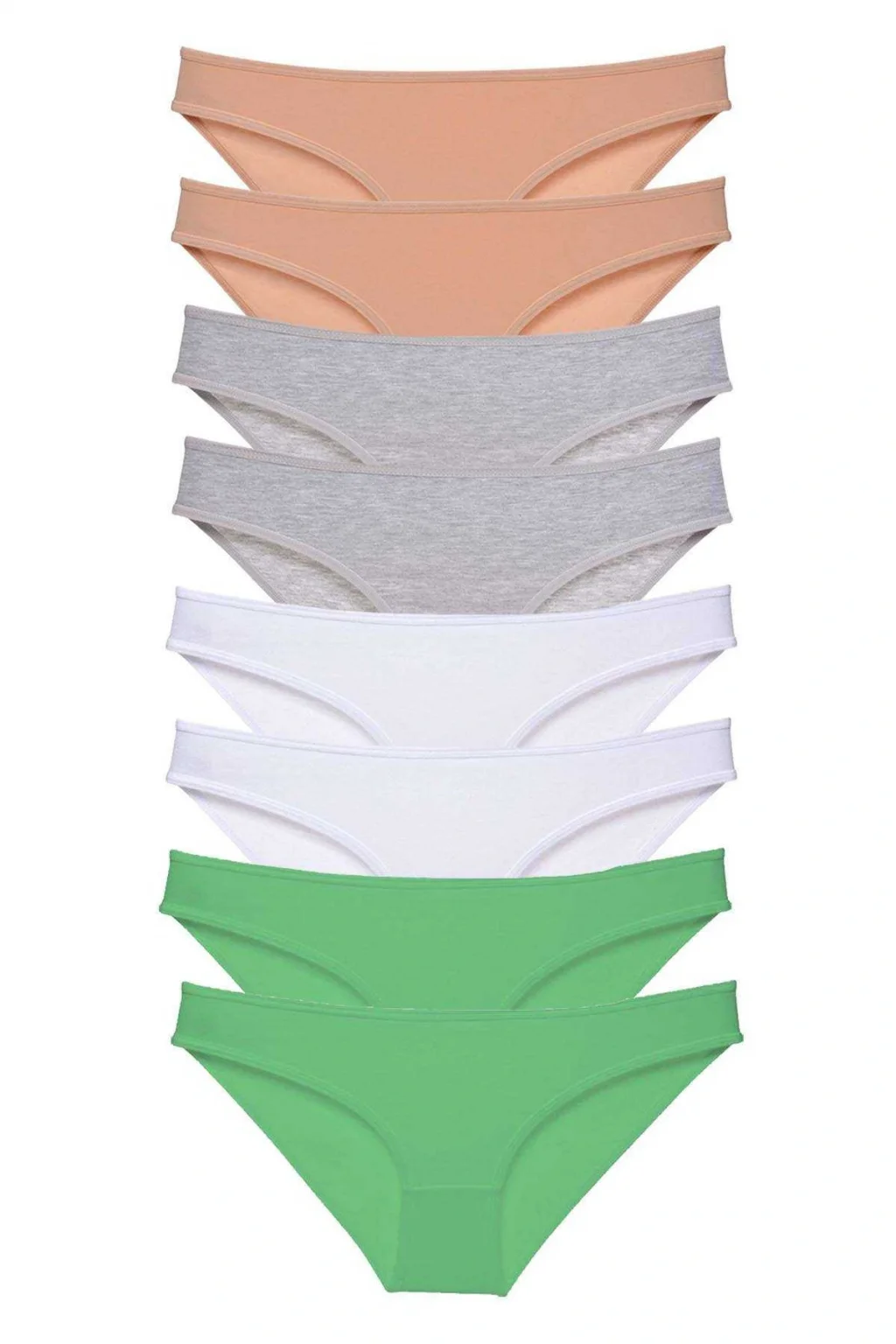 • 8 adet Süper Eko Set Likralı Kadın Slip Külot Ten Gri Beyaz Yeşil