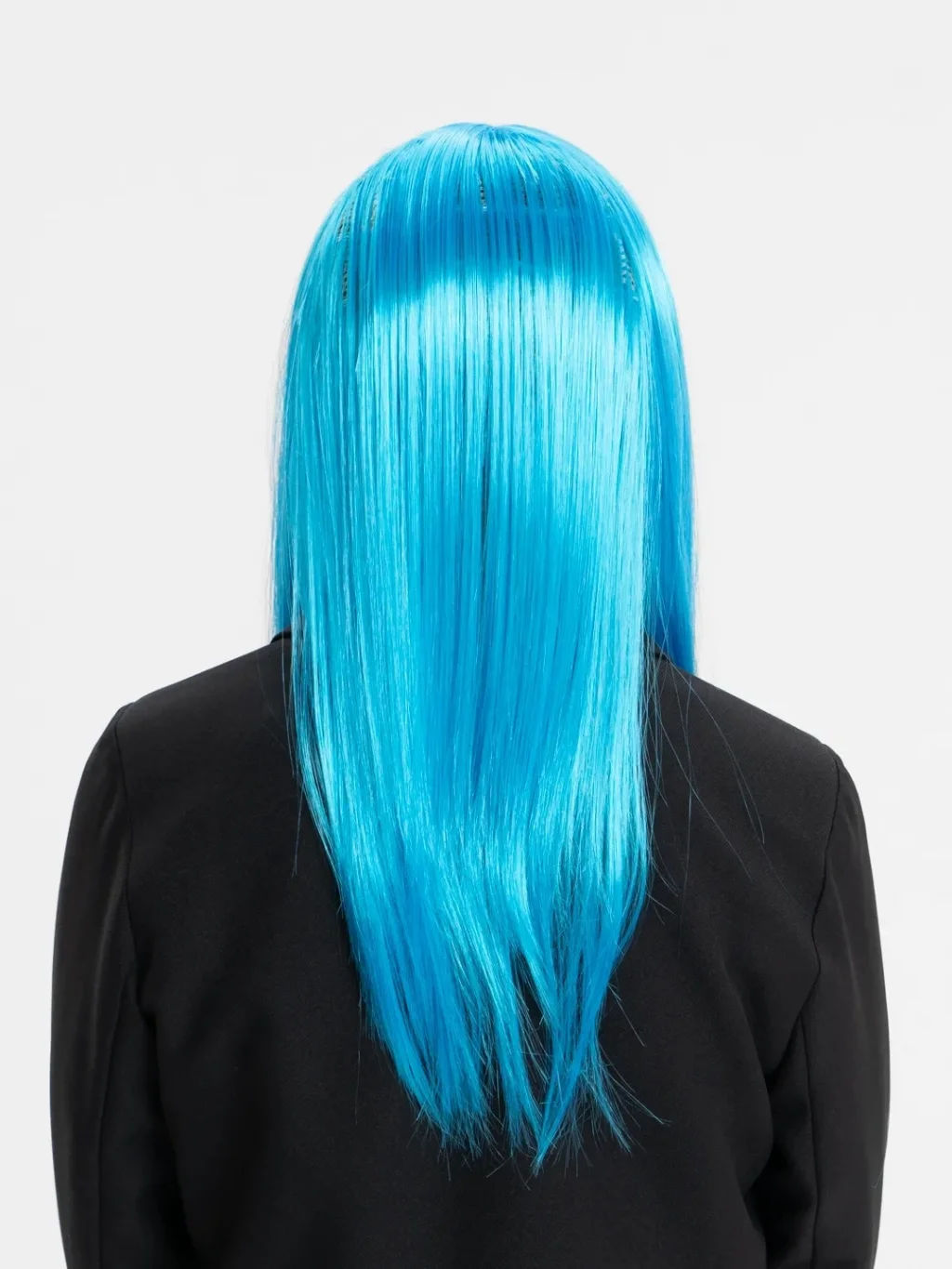 Açık Mavi Renk Uzun Düz Parti Peruğu