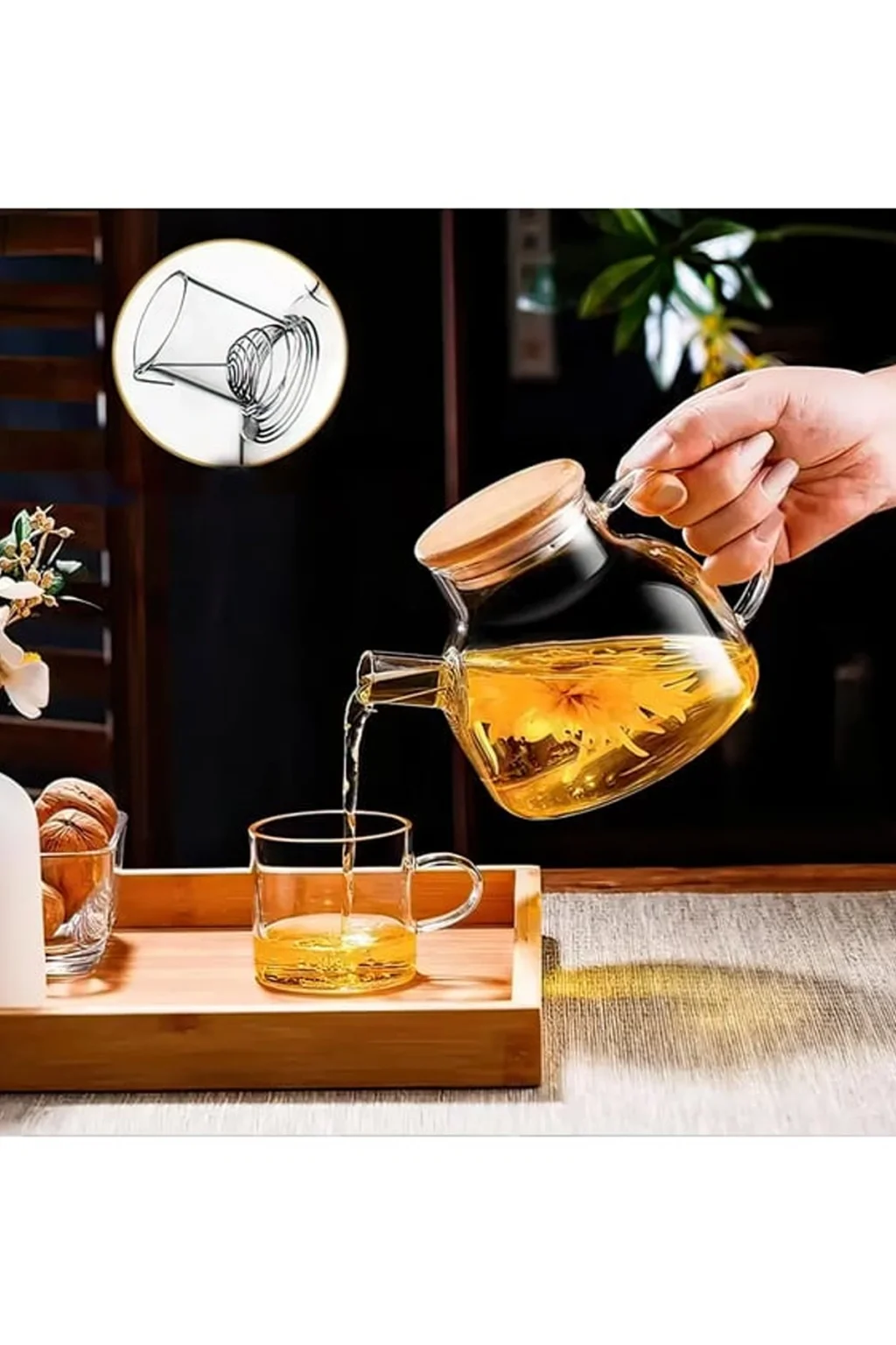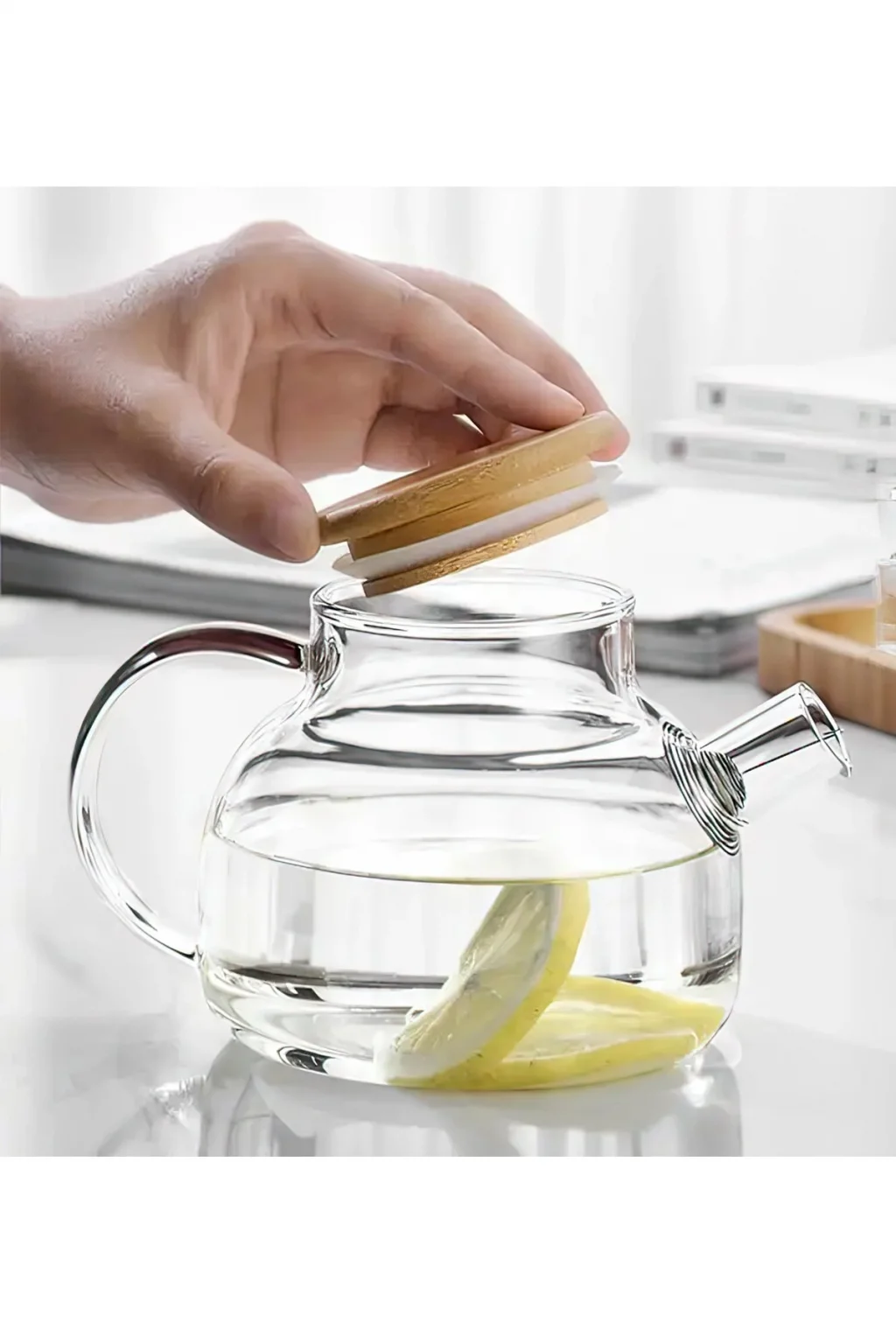 Paket İçeriği : 1 adet  Bambu Kapaklı Borosilikat Cam Demlik 1000ml Royaleks-CM-2000