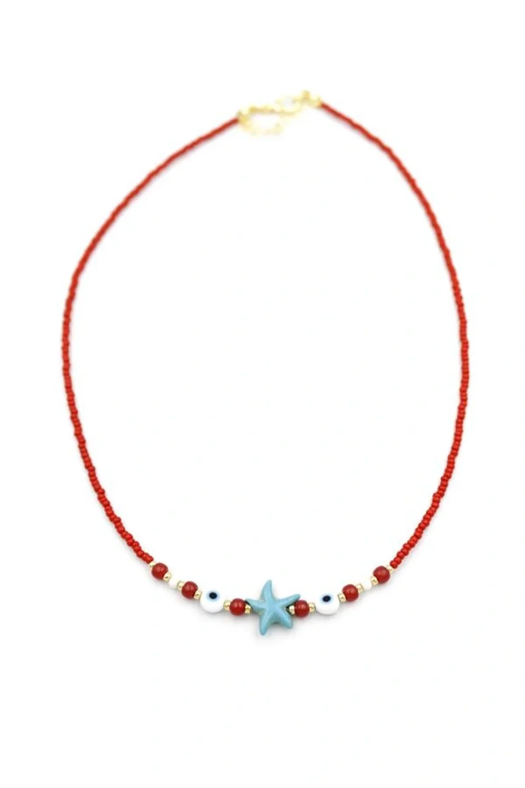 • Boncuk Deniz Yıldzı Kolye - Kırmızı