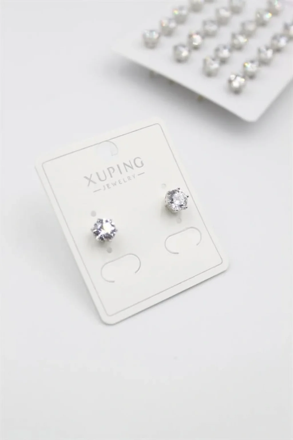 • Büyük Boy Zirkon Taşlı Tektaş Küpe - Gümüş