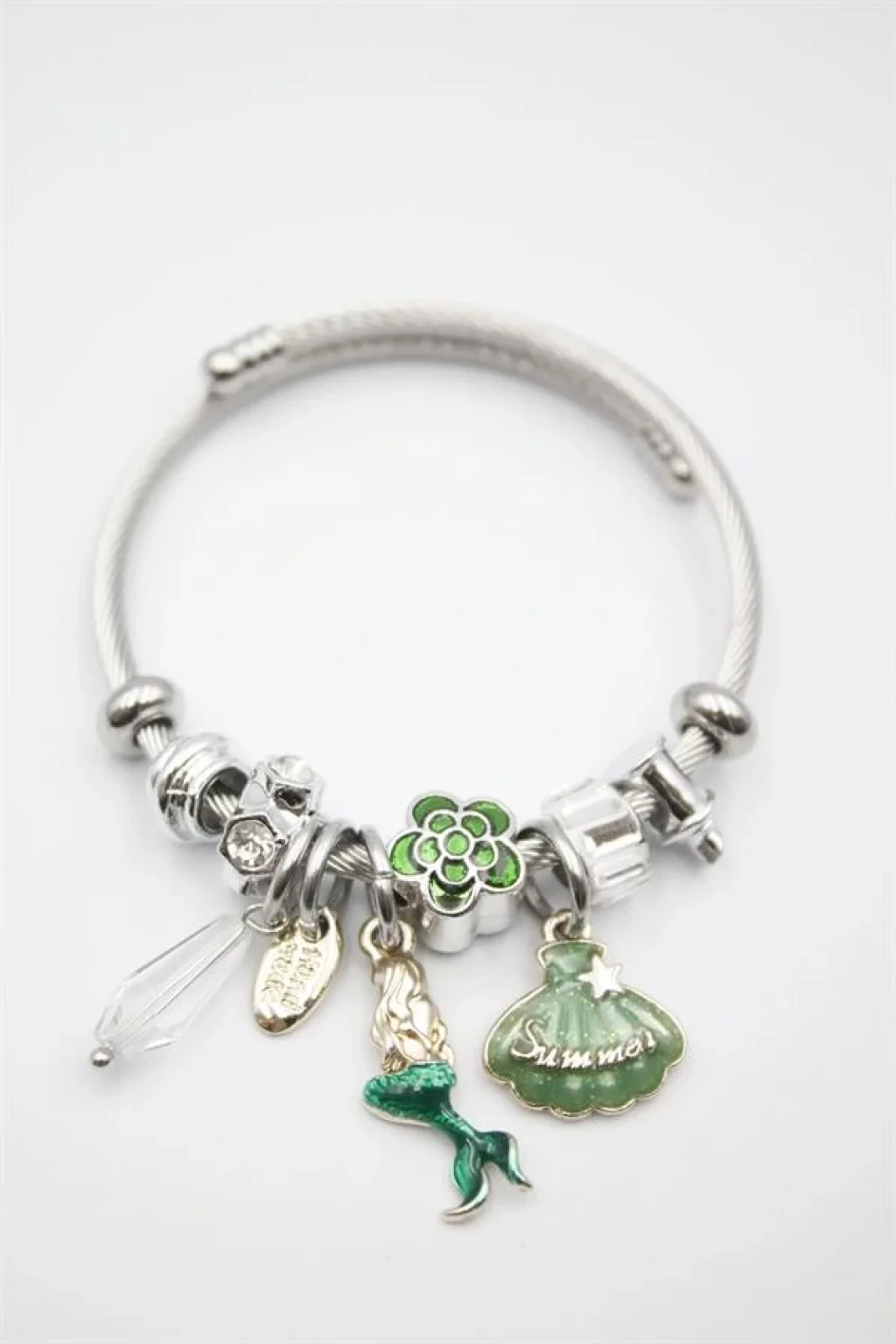 Çelik Charmlı Deniz Kızı Bileklik - Yeşil