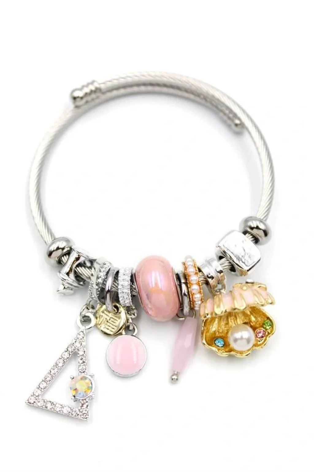 Çelik Charmlı İncili Deniz Kabuğu Bilezik - Pembe