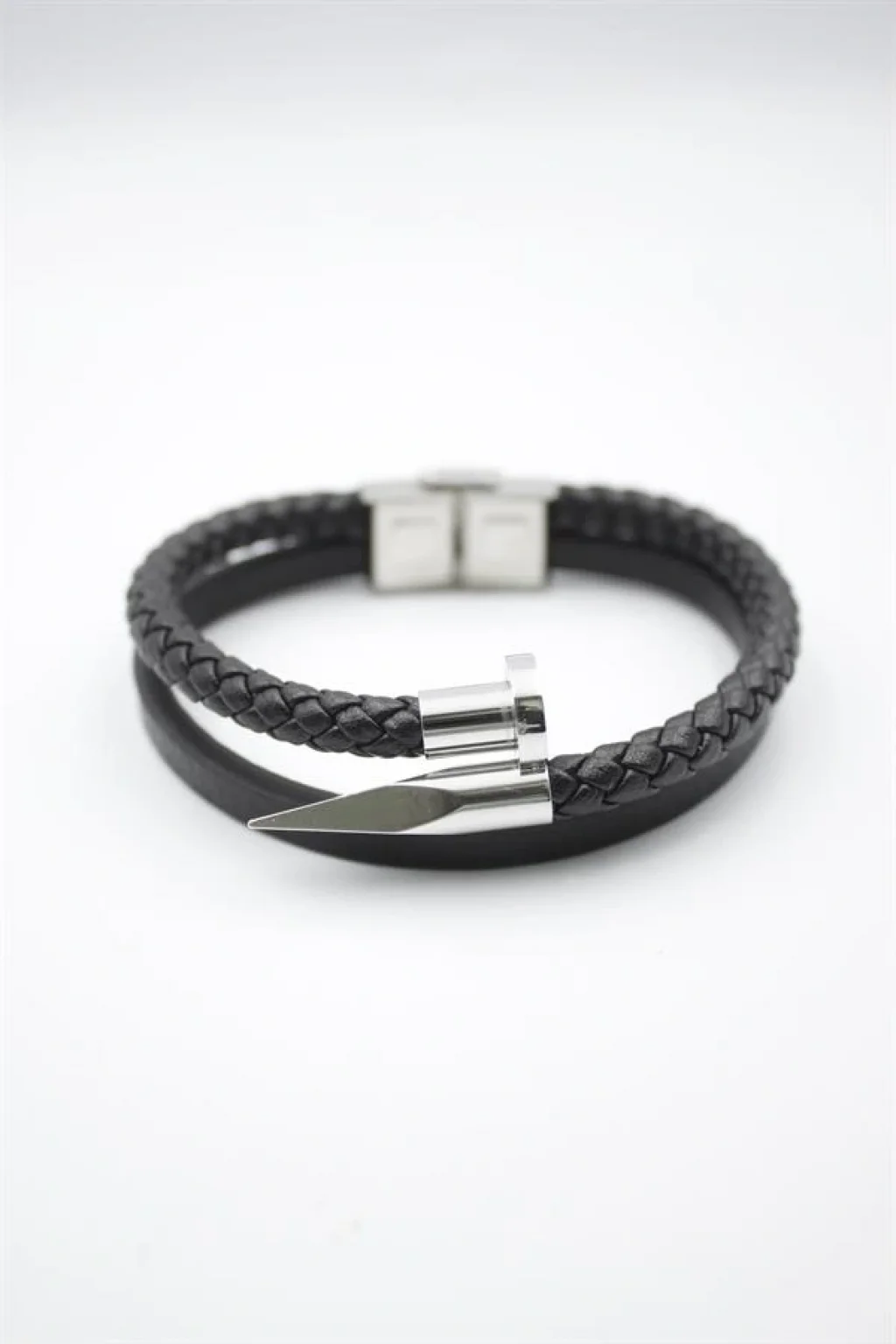 Deri Çivi Bileklik - Gümüş