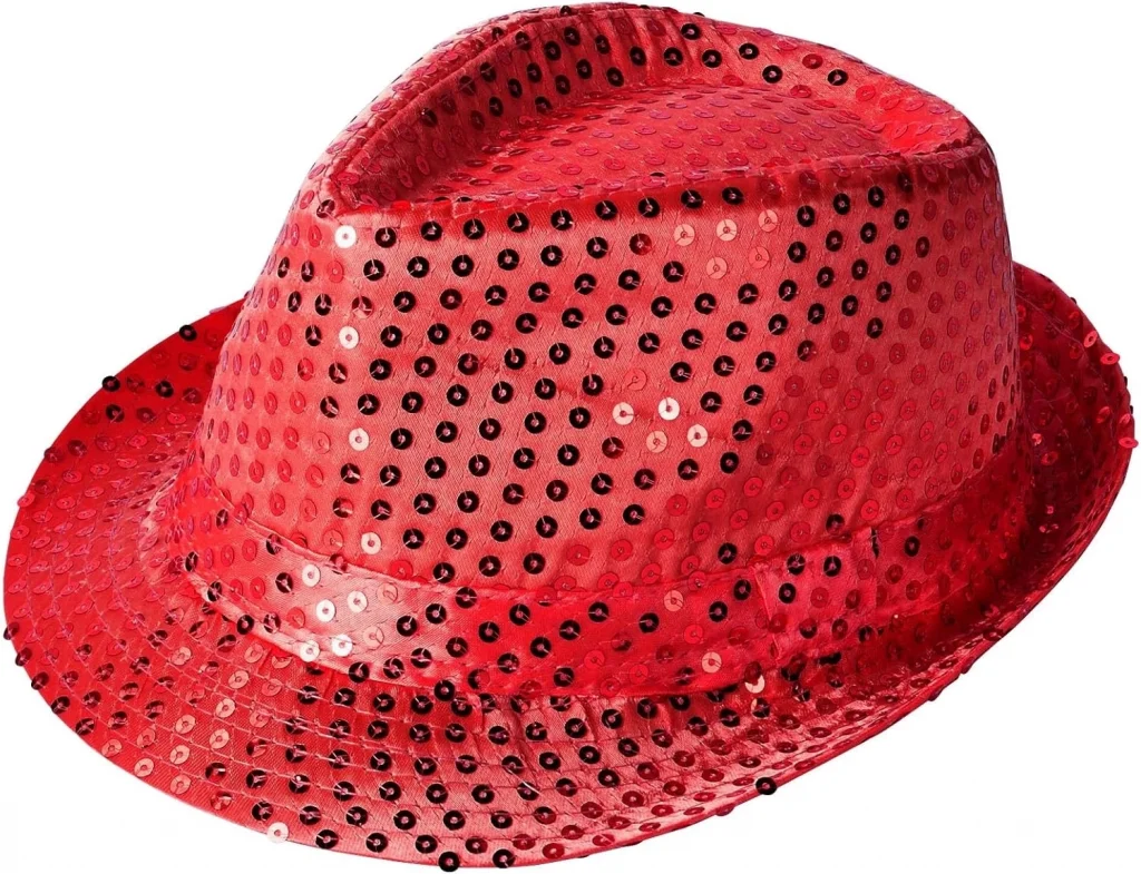 Disko Kırmızı Payetli Fötr Şapka Yetişkin Boy
