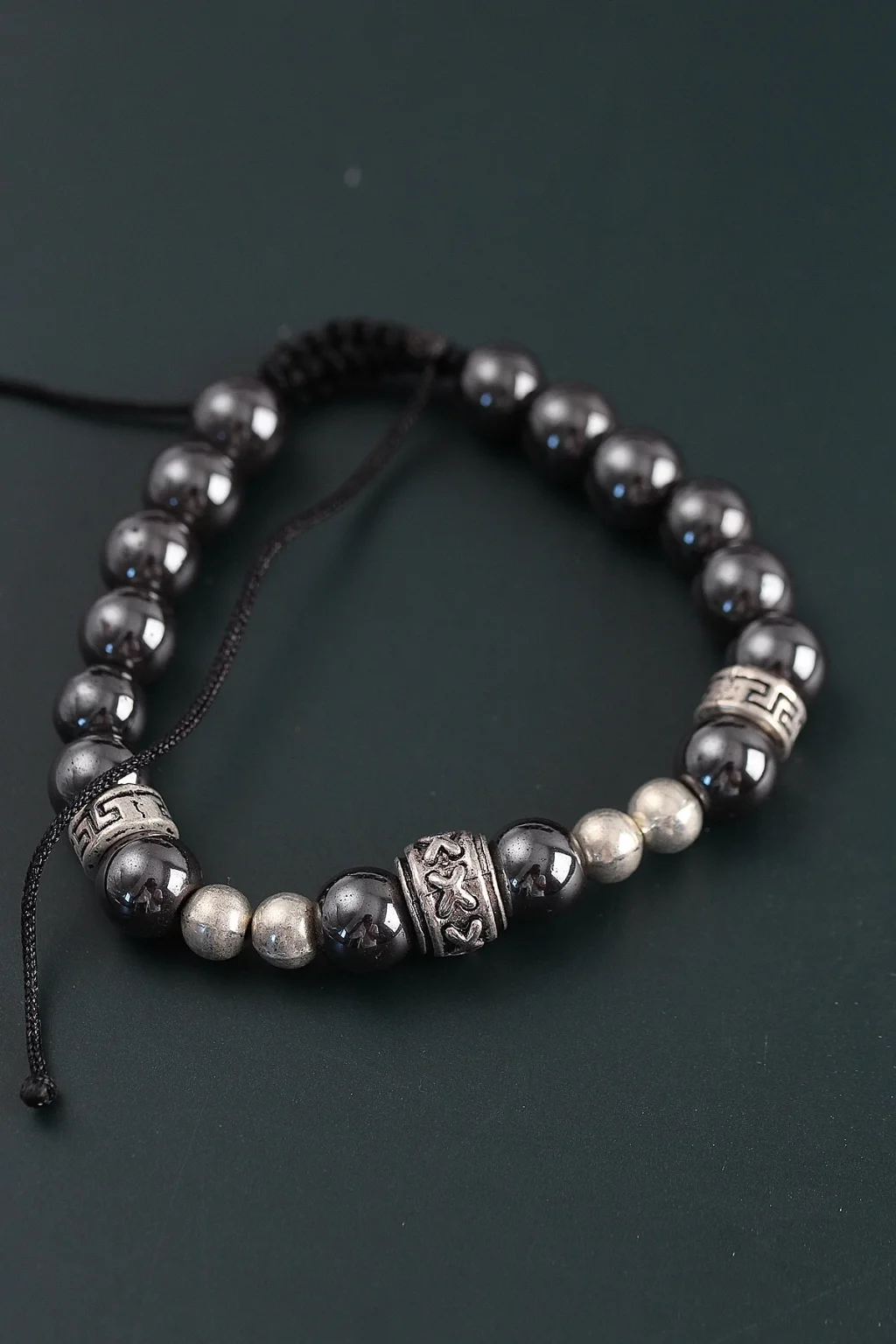 Doğal Taş X Model Antrasit Renk Asansörlü Erkek Bileklik