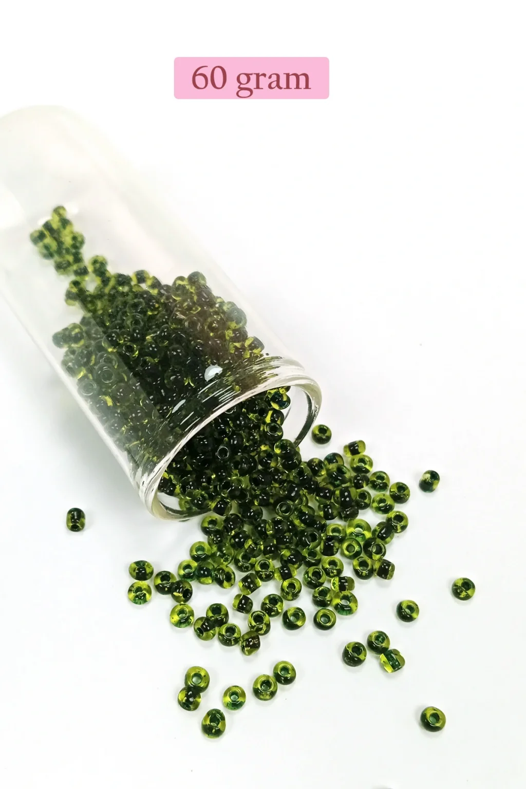 | Dökme Cam Kum Boncuk (8/0) 3 mm - 60 Gram - Şeffaf Yeşil Siyah - BNC220 Renk ve malzeme testinden geçirilmiş olup , cilt için tammen zararsız malzemelerden imal edilmiştir. İncelemiş olduğunuz kum boncuklar 3 mm çapındadır. incelemiş olduğunuz kum boncukların ismi 8/0 olarak bilinir. 1 paket 3 mm 8/0 kum boncuk 20 gramdır. 1 paket 20 gram kum boncuk yaklaşık 800 adet bulunur. Dökme kum boncuklar kolye, bileklik, küpe, aksesuar yapımında ve el işi oya ve örgülerde kullanılmaktadır. |