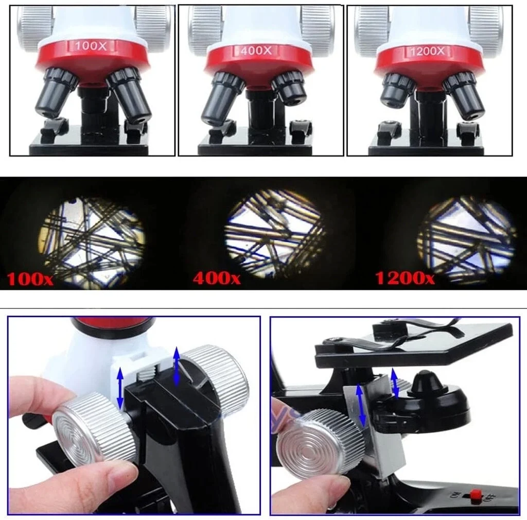 Eğitici Mikroskop Kiti Zoom Led Işıklı 100x 400x 1200x St1200x