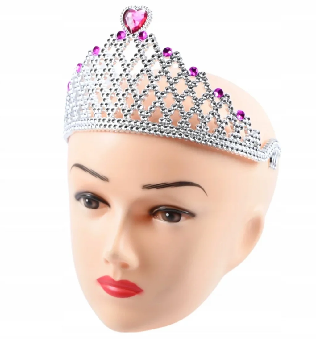Fuşya Kalpli Gümüş Renk Kraliçe Tacı Prenses Tacı