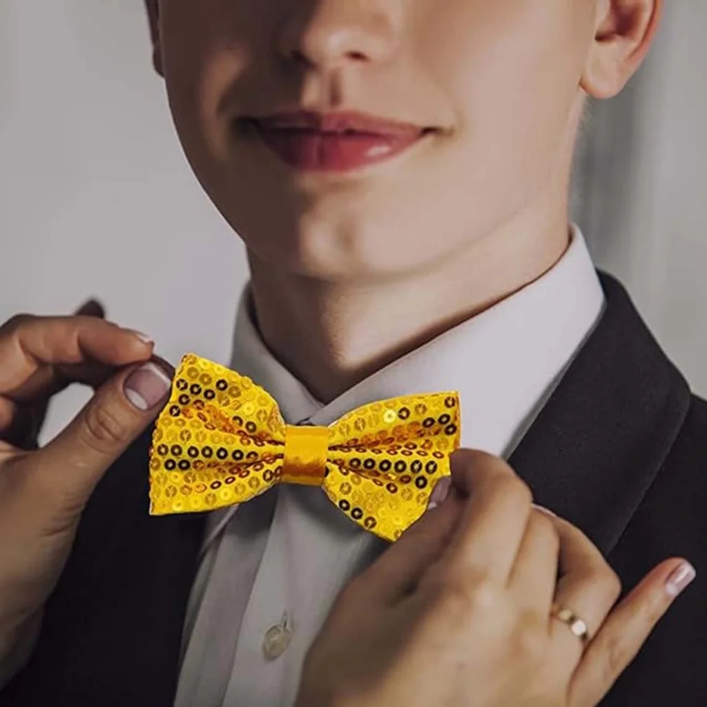 Gece Işıltısı Altın Payetli Pullu Papyon 7x2 Cm