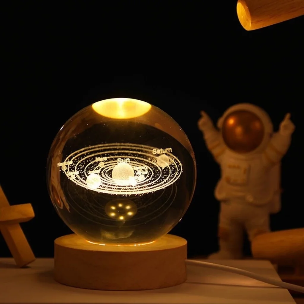 Gezegenler Temalı Ahşap Altlıklı Işıklı Cam Küre