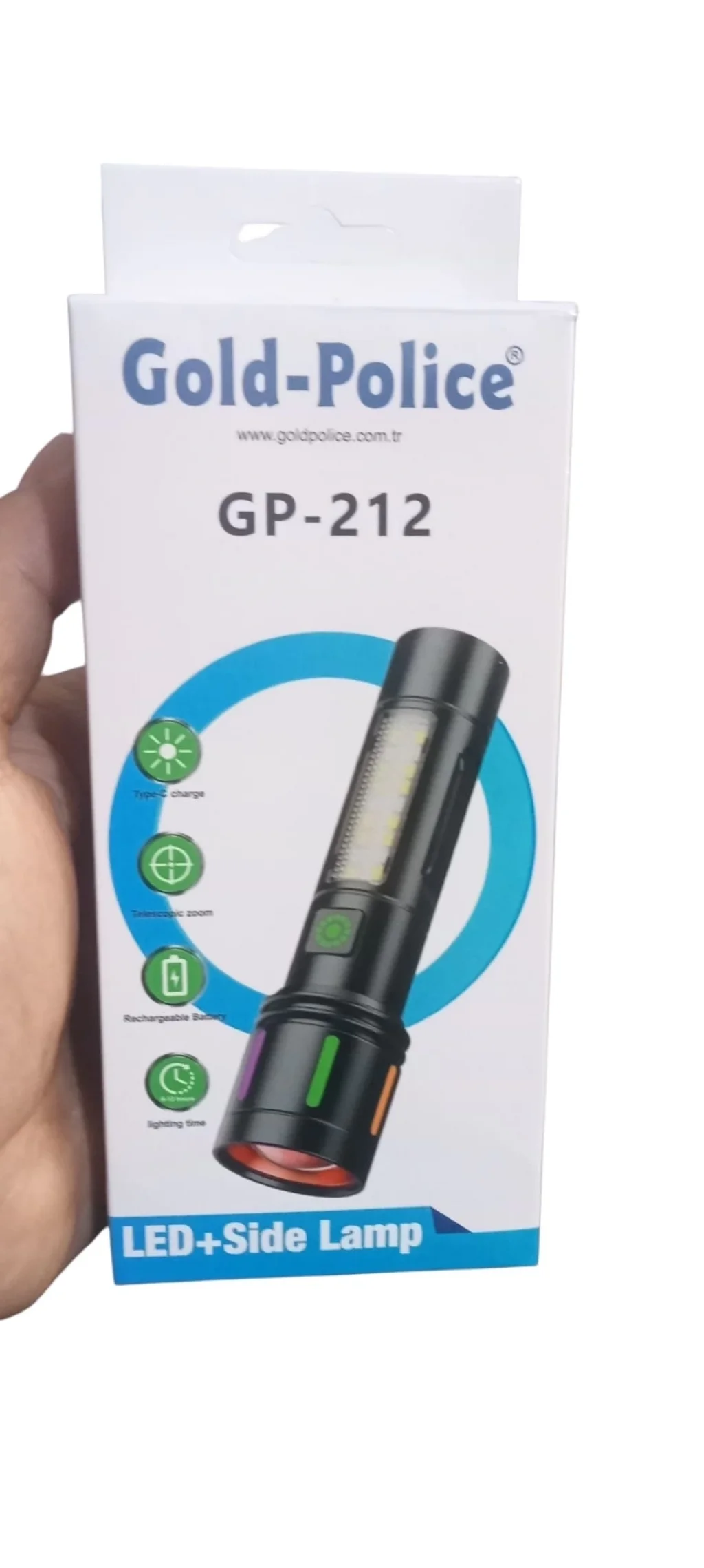 Gold Police Gp-212 Şarjlı Metal El Feneri | 1000 Lümen Polis Feneri Çakarlı
