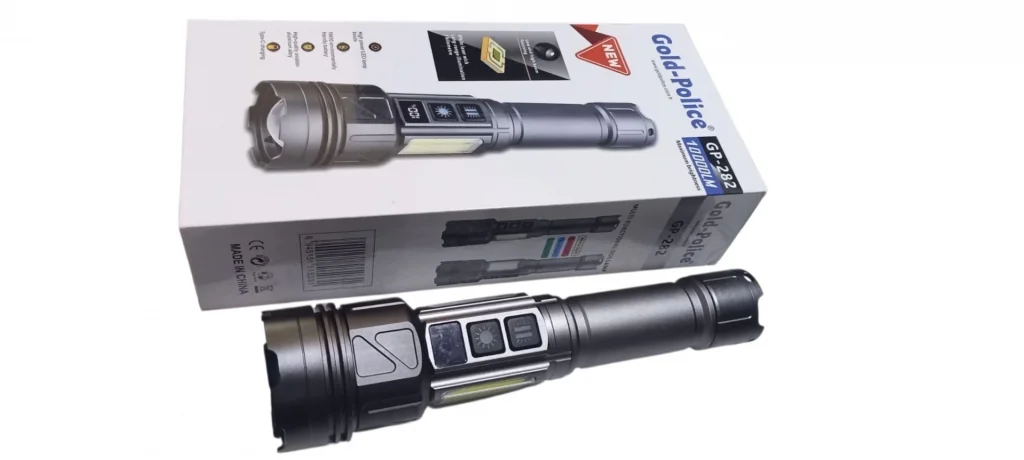 Gold-police Gp-282 Uzun Menzilli Güçlü Şarjlı 10000 Lümen El Feneri 11 Mod Çakar Işıklı Kırmızı-mavi-yeşil Led