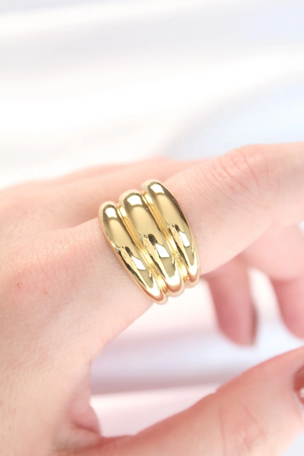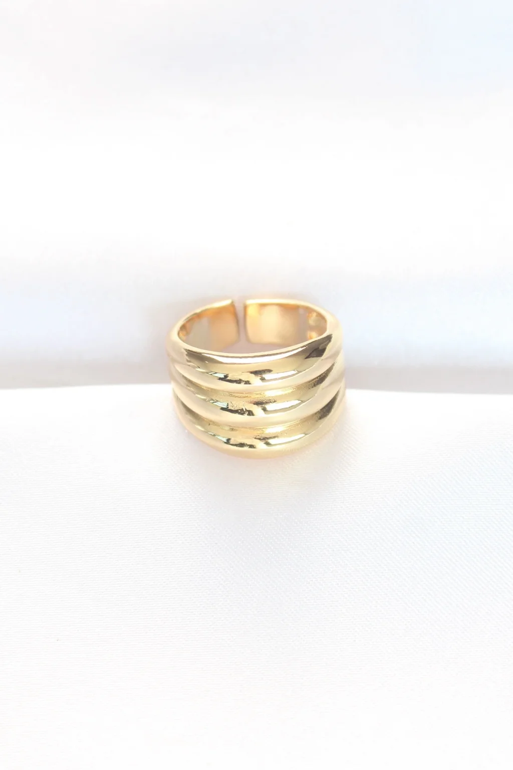 Gold Renk Ayarlanabilir Çizgili Bombe Yüzük