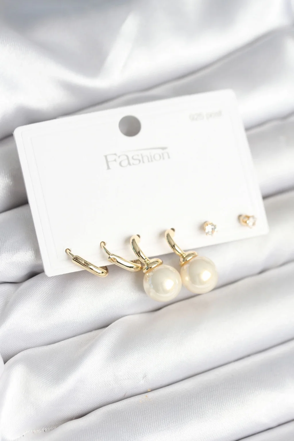 Gold Renk Pirinç 925 Ayar Gümüş Çivili Kadın Küpe Seti