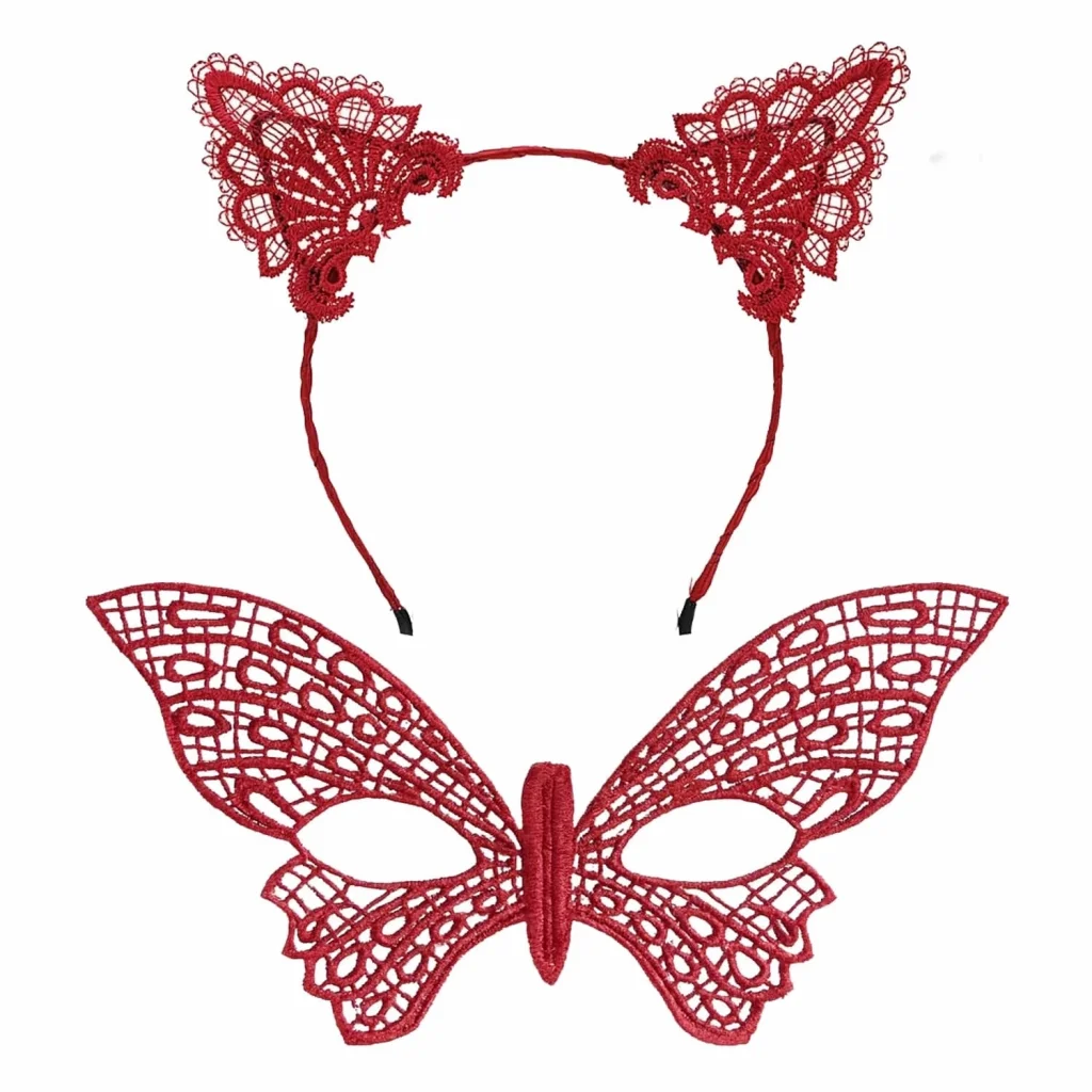 Gösterişli Kırmızı Dantel Maske Ve Taç Seti 7 No – Masquerade Ve Davetler İçin